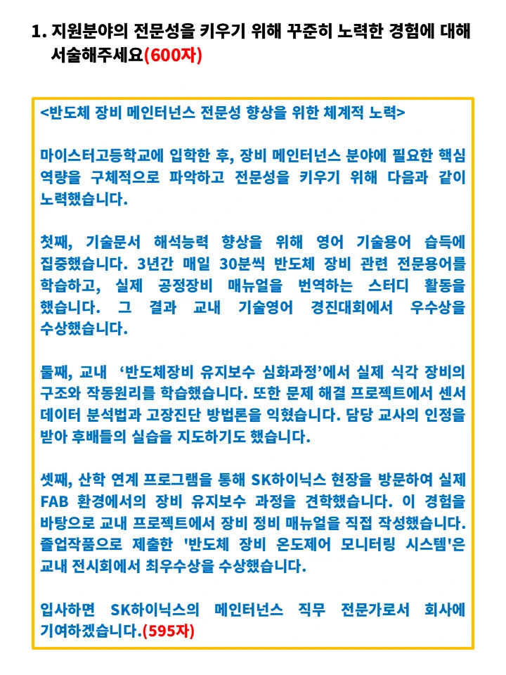 SK하이닉스 고졸 전문대졸 자기소개서 메인터넌스 오퍼레이터