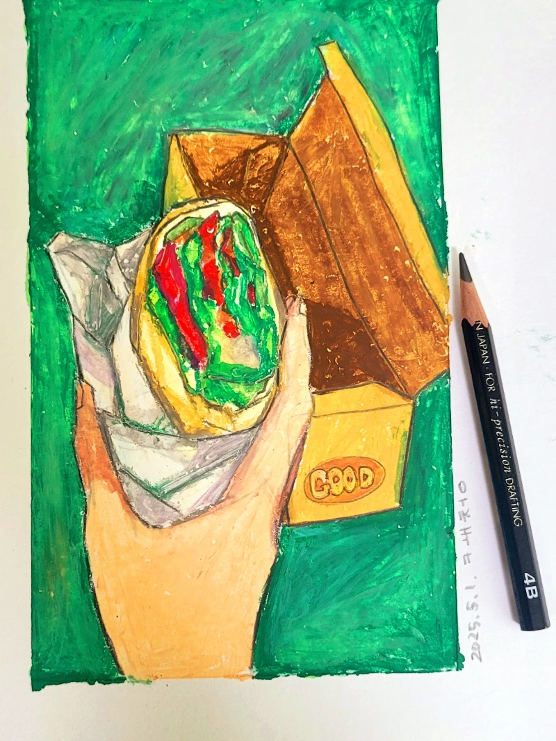 늦은 점심으로 치킨 랩 샌드위치를 먹었다.