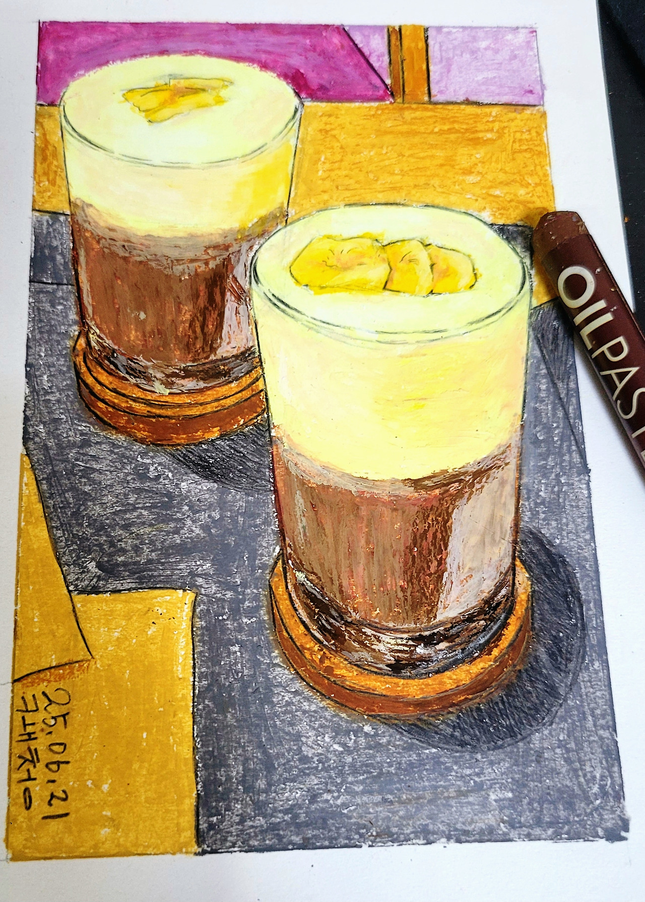그림일기를 그릴 때는 36색 오일파스텔과 다이소 크레파스를 쓴다. 수작업을 잘 못하는 편인데 특히 크레용은 잘 다루는 재료가 아니다. 그래도 크레용을 만지면 그림을 즐겁게 그렸던 어린 시절이 떠오른다. 그 감각을 가져가고 싶었다. 하다 보니 색상을 다양하게 쓸 수 있도록 72색짜리를 사고 싶다는 생각이 든다. 장인은 도구 탓을 안 한다고 하지만 나는 장인이 아니니까 도구를 탓해도 된다.