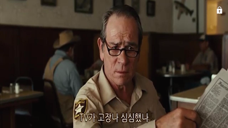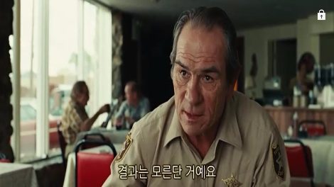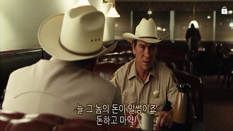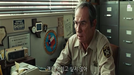 보안관 벨은 항상 한 발 뒤에서 욕망과 죽음의 싸움을 지켜본다. 마치 모든 걸 다 안다는 듯이. .