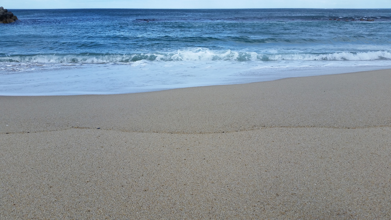 부드러운 모래. 숨 쉬는 모래. 발바닥을 간지럽히는 모래.