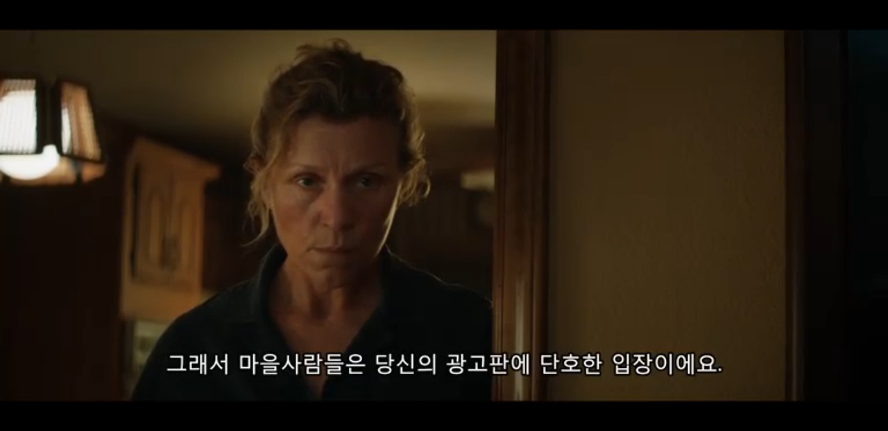 여주인공의 진심 섞인 연기가 돋보였던 영화 쓰리 빌보드, 세 개의 광고판, 추천합니다.