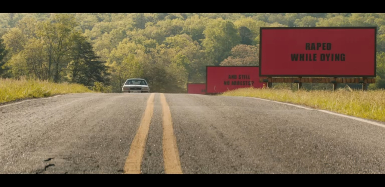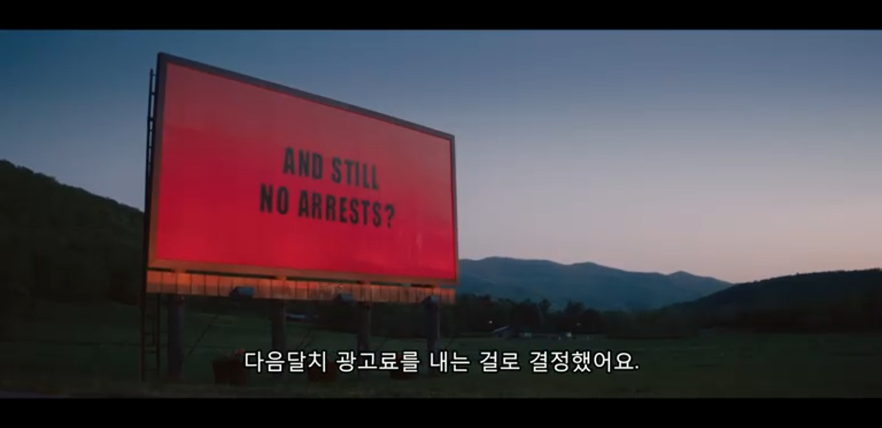 그녀는 갑자기 있는 돈 없는 돈을 탈탈 털어 마을 초입에 커다란 3개의 광고판 '쓰리 빌보드'를 세운다.