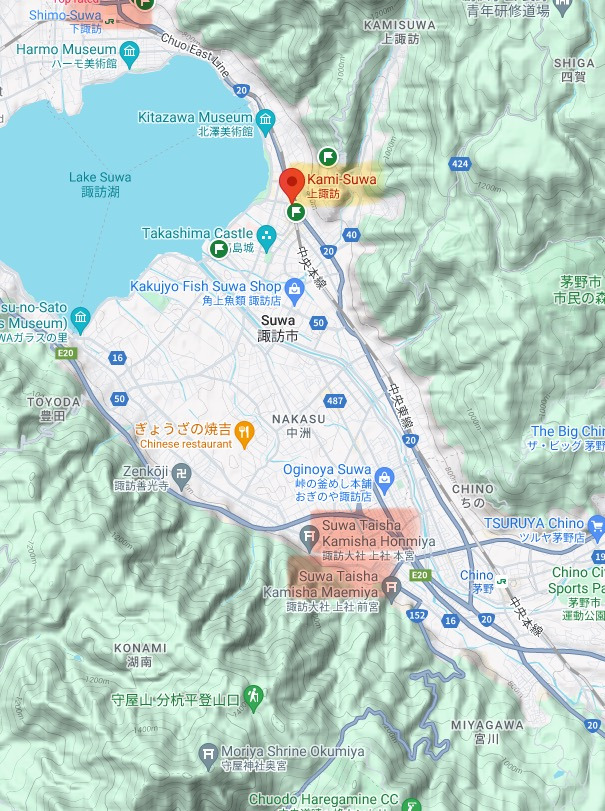 참고로 스와는 스와 호를 중심으로 시모스와 정(下諏訪町)과 카미스와 정(上諏訪町)으로 구분되는데, 한자로 보면 알 수 있듯 스와 호의 위(上)와 아래(下)로 나뉜다. 지도상으로는 시모스와(下諏訪)가 스와 호의 위쪽에 있지만 어째서 이름은 반대로 되어 있을까. 이 막연한 궁금증에 대한 해답은 춘궁에서 볼 수 있었다.