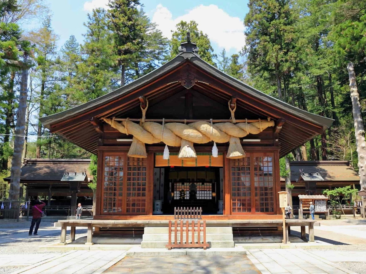 스와 대사는 전국에 약 25000개의 분사가 존재하는 거대한 신사인데, 그 본체도 본궁과 전궁, 춘궁과 추궁, 4개의 사로 구분된다. 전설에 따르면 타케미나카타가 아내를 위해 지은 저택이 스와 대사의 하루미야(春宮, 춘궁)와 지금 이곳, 아키미야(秋宮, 추궁)라고 한다. 스와 호의 북쪽에 지어 아내의 고향에 가까운 장소에 살 수 있도록 한 배려이자 스와의 남북을 굳히는 의미도 있었다는데, 이방인이었던 타케미나카타가 스와를 효율적으로 통치하려면 불가피했으리라 생각한다.