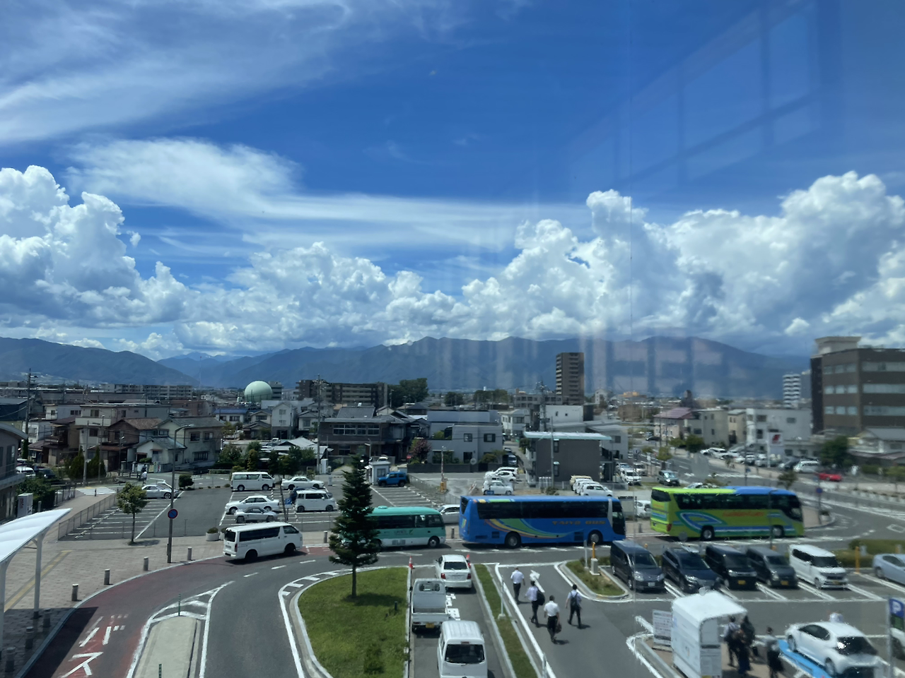 열차는 시노노이선의 고개를 따라 1시간 정도 달려 마츠모토에 도착했다. 열차 안이 시원해서 좋았는데, 내리자마자 후끈한 바람이 불어닥쳤다. 마츠모토 성은 역에서 도보로 20분 거리에 있다. 어제 내렸던 큰 비 때문인지 하늘은 매우 화창했지만 그대로 걸어갔다가는 쪄 죽을 것 같아 공유 자전거 서비스인 HELLOCYCLING의 자전거를 빌려 탔다.