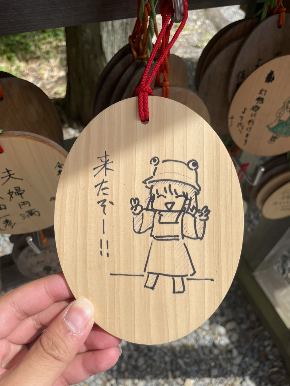 갈수록 스와묘진(諏訪明神) 이야기가 흥미로워지는데, 에마에는 그 신화를 바탕으로 한 작품인 <동방풍신록>의 캐릭터들로 가득했다. 저번에 유네스코 세계 문화유산이자 <쓰르라미 울 적에>의 배경지이기도 한 시라카와고(白川郷) 하치만 신사(八幡神社)에 방문했을 때도 <쓰르라미 울 적에>의 캐릭터 그림이 그려진 에마가 잔뜩 있었는데, 이와 같은 행동에 대해 일각에서는 영험한 장소이자 지역의 문화가 담긴 신사에서 과도한 덕질과 서브컬처 성지순례가 지역민의 불편을 야기한다고 목소리를 내기도 하는 만큼 다소 갈등이 빚어질 수 있는 문제라 생각한다.