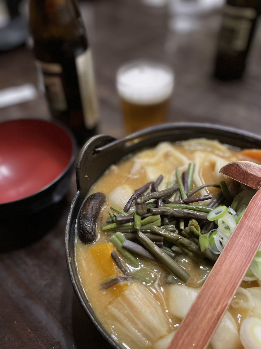 호토의 첫인상은 조금 당황스러웠다. 냄비인지 그릇인지 애매한 용기에 담긴 국물의 비주얼이 예사롭지 않았다. 젓가락을 넣어보면 넓고 길쭉한 면이 나온다. 식감은 수제비와 비슷한 느낌이지만 국물이 굉장했다. 미소 된장 베이스에 갖가지 신선한 채소와 버섯 향이 우러나 입 안에서 풍년이 드는 느낌이었다. 심지어 부드러운 고기와 감자까지 들어있으니 이 얼마나 혜자스러운가.