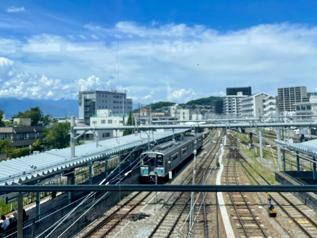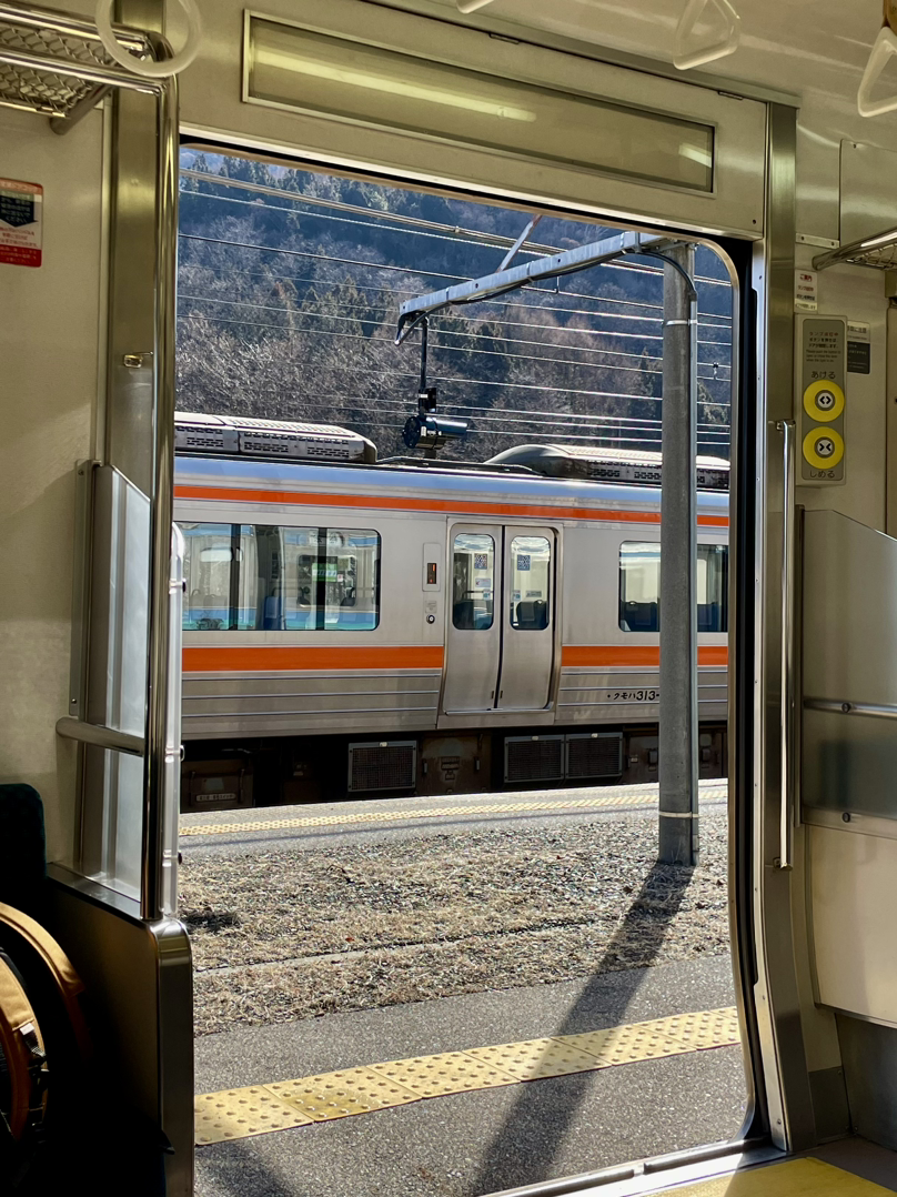 역으로 돌아와 전광판을 보고 헐레벌떡 뛰었다. 편수가 적은 시오지리행 보통 열차가 곧 도착 예정이었기 때문이다. 마츠모토에서 시노노이선 보통 열차에 오른 후 종점인 시오지리(塩尻)까지 간다.
