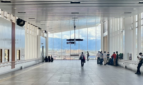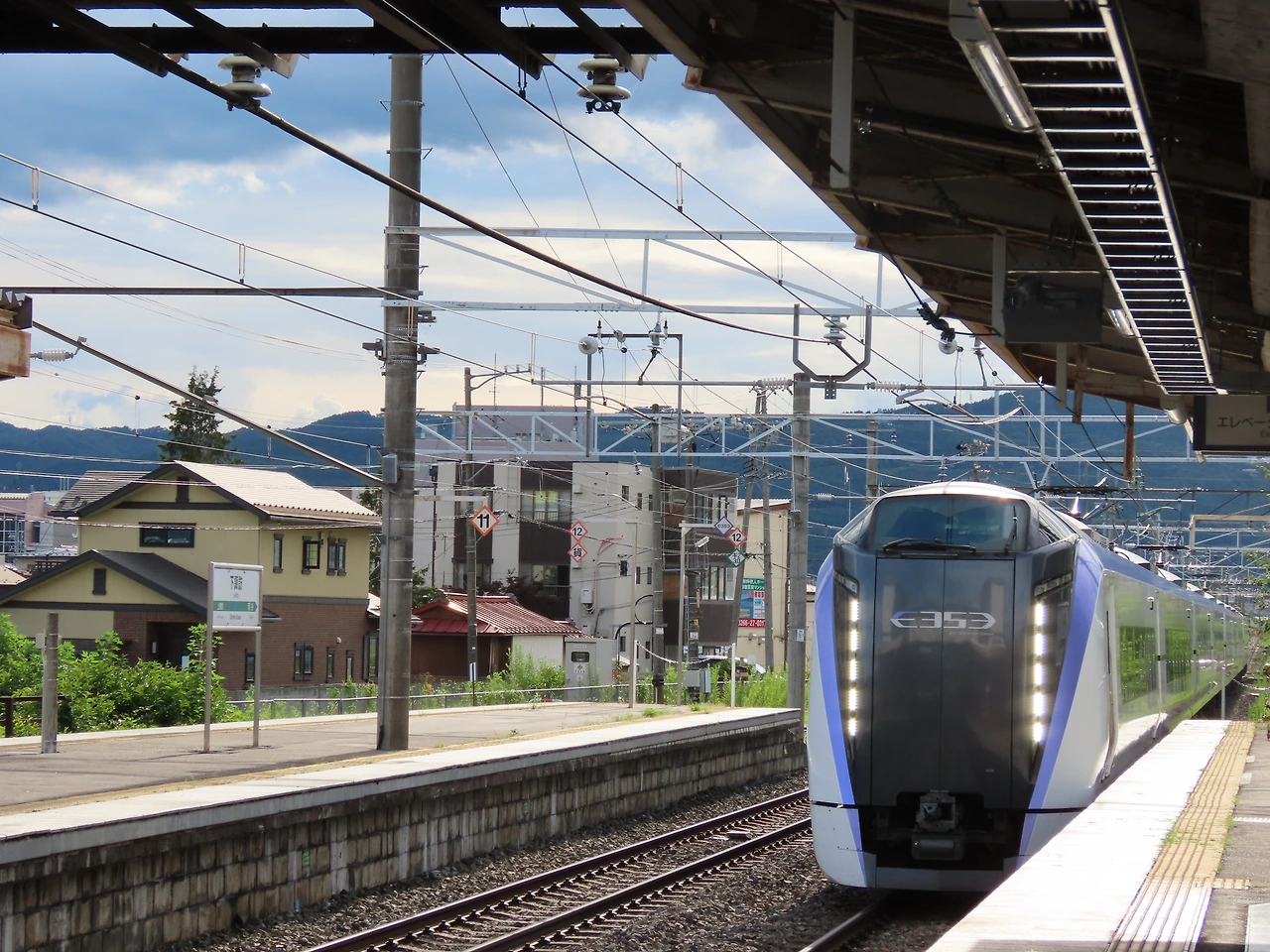 이 와이드 뷰 특급 차량엔 와이드 뷰 차임이라는 전용 차임벨이 쓰이는데 철도 마니아 사이에서도 좋은 멜로디로 인기가 많다. 그린샤로 예약해 전망을 즐기고 싶었으나 「시나노」의 선두칸은 인기가 많아 매진이었다. 아쉽지만 언제 다시 들어볼지 모르는 와이드 뷰 차임이라도 영상으로 담아보았다.