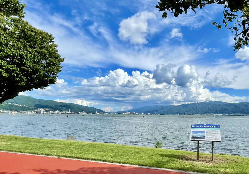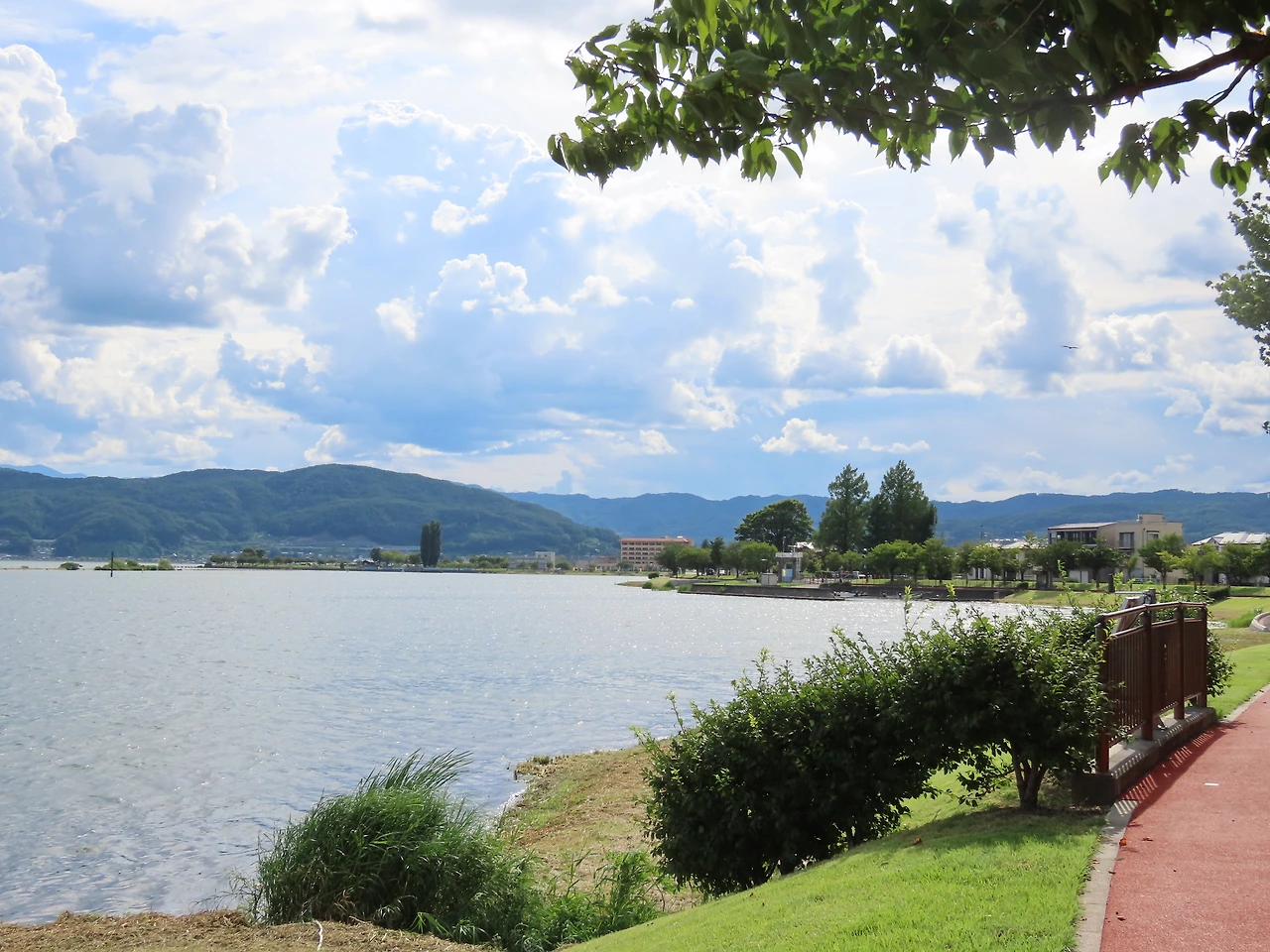 이곳은 스와에서 유명한 후지산 뷰 포인트. 근처엔 하모 미술관이라는 미술관이 있고 크고 작은 공원이 많다. 날씨는 후끈했지만 그런대로 기분은 좋았다.