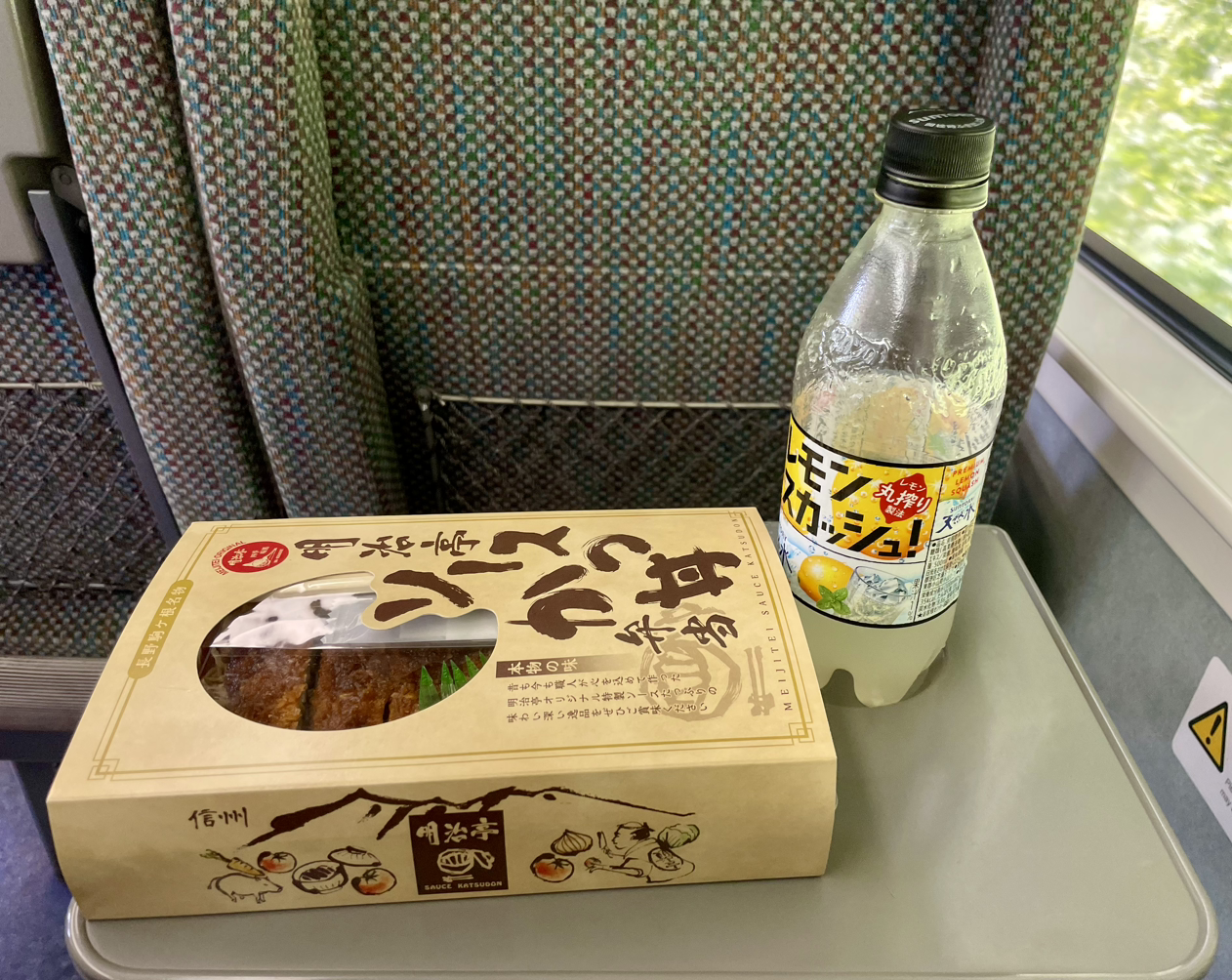 「시나노」는 나고야와 나가노를 이어주는 츄오 본선(中央本線)과 시노노이선(篠ノ井線)의 정기 특급 열차로, 그 인기와 수요가 상당해 최대 12량 편성으로 매일 13 왕복 운행한다. 오늘도 빠질 수 없는 에키벤은 미소 된장 소스를 곁들인 돈가스 덮밥이다.