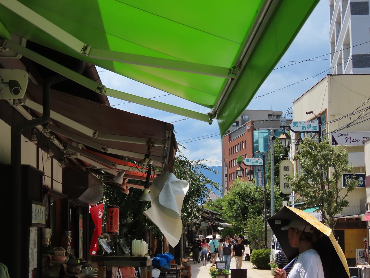 개구리에 거리를 지나 조금 더 가니 마츠모토의 명소, 나카마치도리로 이어졌다. 예로부터 츄부(中部) 지방의 주요 거점이었던 마츠모토는 상점가가 발달했는데, 나카마치도리는 일찍이 주조업과 포목 등의 도매상이 모여 번성했으나 메이지 시대에 큰 화재에 휩쓸렸다고 한다. 그 후 화재로부터 상점을 지키기 위해 회반죽을 사용한 흙 벽 창고가 만들어져 지금의 모습이 되었다고 한다.