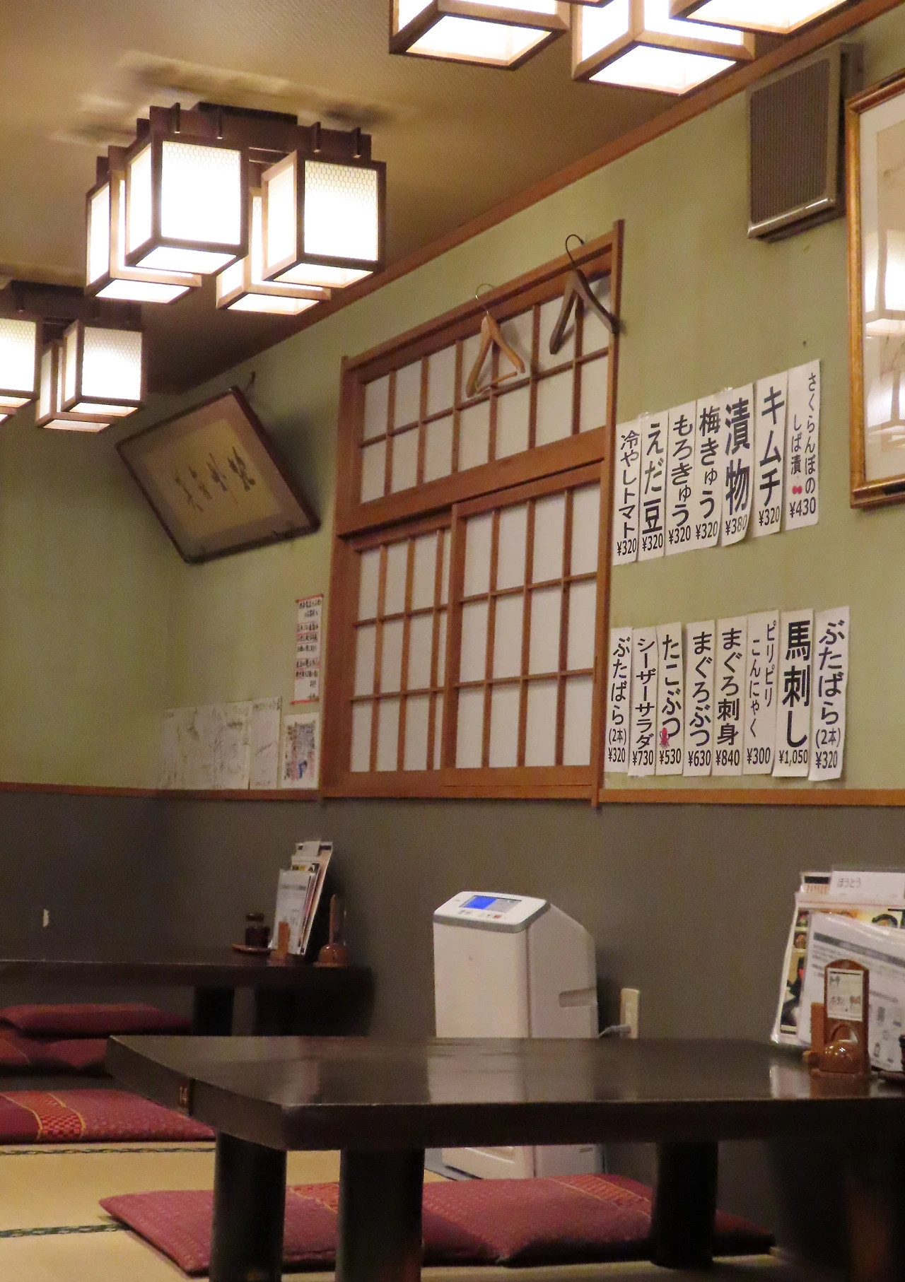 가게의 모습은 상당히 오래된 느낌이다. 가게 앞에는 야마나시 현 특산품으로만 요리한다고 적혀있었다. 소도시의 음식점에는 오사카나 도쿄에서 자주 볼 수 있는 다국어 메뉴판은 일절 없다. 하지만 이것 나름대로 매력이다. 분명 같은 요리지만 사투리로 적혀있거나 지역 특산 요리에 대해 알 수 있어 흥미롭기 때문이다. (ex, 홋카이도에서는 닭튀김을 잔기(ザンギ)라고 부른다.)