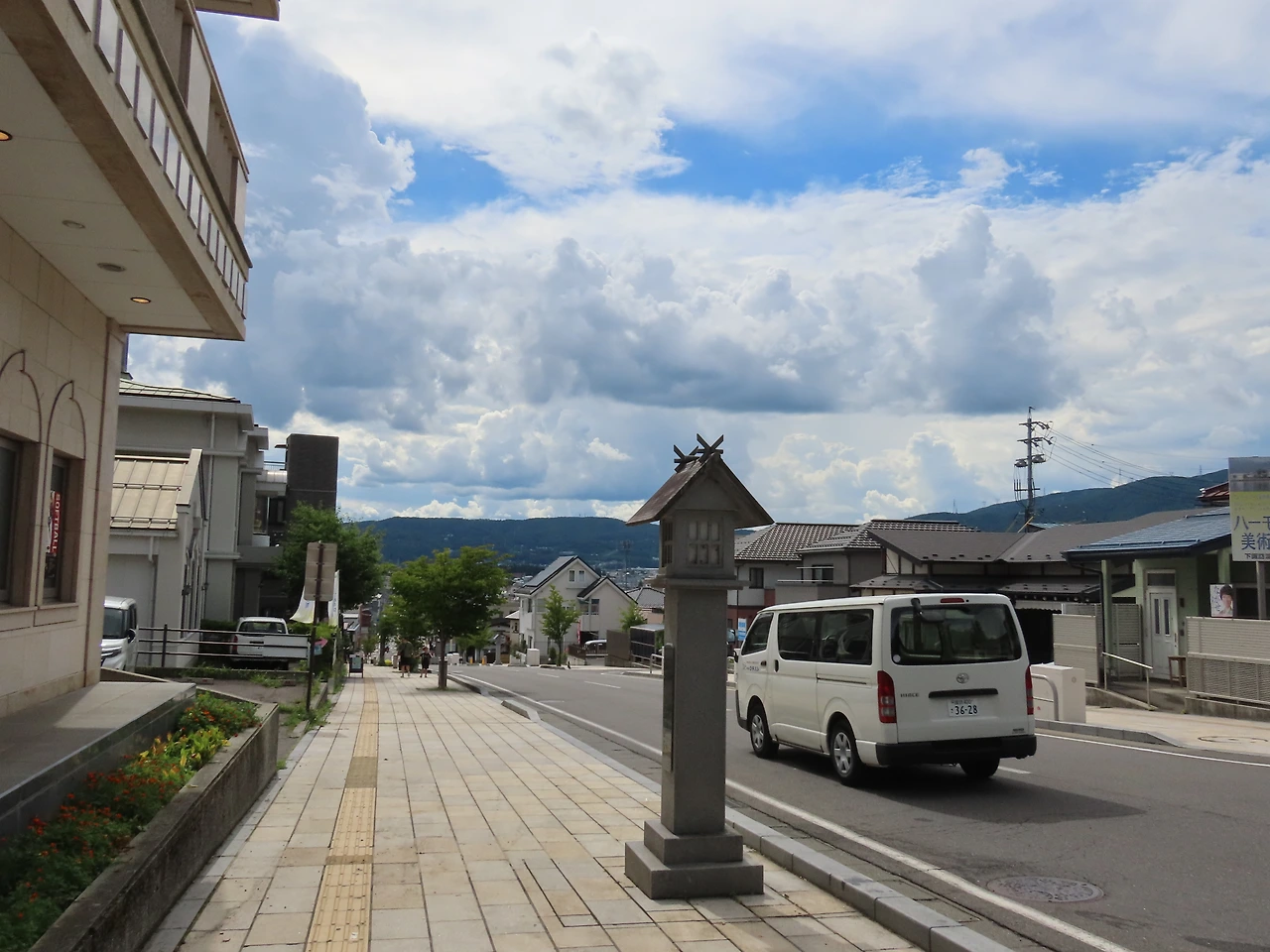 시모스와 역에서 하사추궁까지는 걸어서 10분이면 충분하다. 천천히 걷다 보면 평화로운 스와의 골목마다 흐르는 냇물 소리가 들려와 힐링되는 기분이 든다. 일본의 이곳저곳을 쑤시고 다녀봤지만 가장 마음이 편안한 곳은 스와라고 생각한다. 마을의 규모도 꽤 크지만 스와 대사의 소재지인 만큼 참배객들의 왕래가 잦아 삭막하지 않기 때문에 더 좋다고 생각한다.