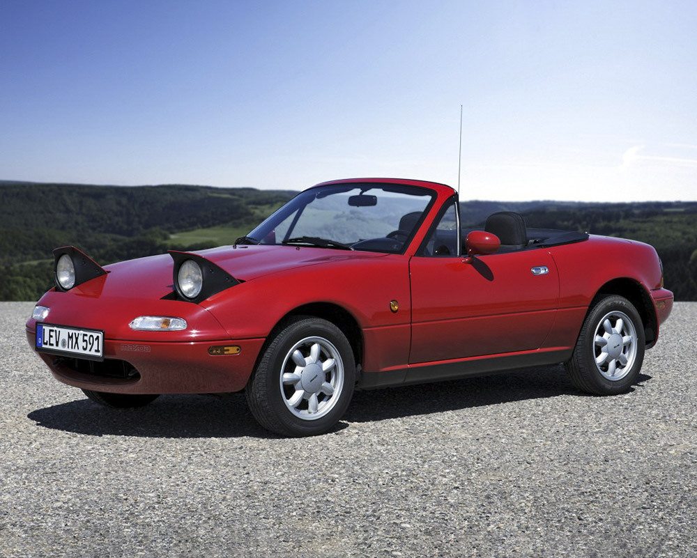 1989년 출시한 미아타는 오래된 유럽산 스포츠카의 디자인을 참고만 한 것에 그치지 않고 현대적으로 각색되었다. 전면과 후면, 휠에서 드러나듯 전반적으로 둥근 콘셉트에 리트랙터블 라이트(Retractable Light)를 가진 미아타의 디자인은 근 10년 동안 자동차 신에서 찾아볼 수 없던 스타일이었다. 60년대 영국산 고급 스포츠카를 연상시키는 룩에 경쾌한 후륜 구동의 주행 감각과 소프트탑 옵션이 적용된 저렴한 일제 로드스터 미아타의 인기는 폭발적이었다.