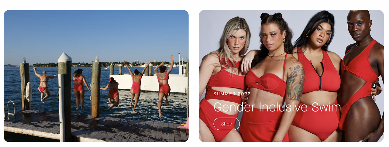 앞서 인클루시브 디자인은 보이지 않는 가치들까지 포함하는 개념이라고 언급한 바 있습니다. 즉, 사회적으로 형성된 고정관념이나 통념을 넘어서려는 시도 등이 인클루시브 디자인에 모두 포함됩니다. 대표적으로는 ‘아름다움’이 있습니다. 특히 서구식 마른 몸매는 고정되고 획일화된 미적 가치를 전합니다. 다행히 최근에는 다양한 브랜드들에서 [인클루시브 뷰티]라는 개념을 들고 나오고 있습니다. 특히 모델의 다양성에 주목할 필요가 있습니다. 미국의 스포츠 웨어 브랜드 ‘Chromat’의 웹사이트에 들어가 보면 우리가 일반적으로 생각하는 이미지와는 무척 다른 모델들이 보입니다. 비만으로 보이는 여성은 물론 성 소수자, 트랜스 젠더 등이 당당하고 멋지게 모델로 서있습니다. 이 브랜드의 수영복 사이즈는 x-small부터 시작해 4x까지 존재합니다. 브랜드는 일반적이지 않은 모델들과 철학이 담긴 상품을 통해 고정된 아름다움이란 결국 상상의 질서에 불과하다는 메시지를 던지고 있습니다. 여러분들은 Chromat 사이트에 있는 모델들이 어떻게 보이시나요? 제 눈에는 깡마른 모델보다 훨씬 힙하고 멋지게 보입니다.