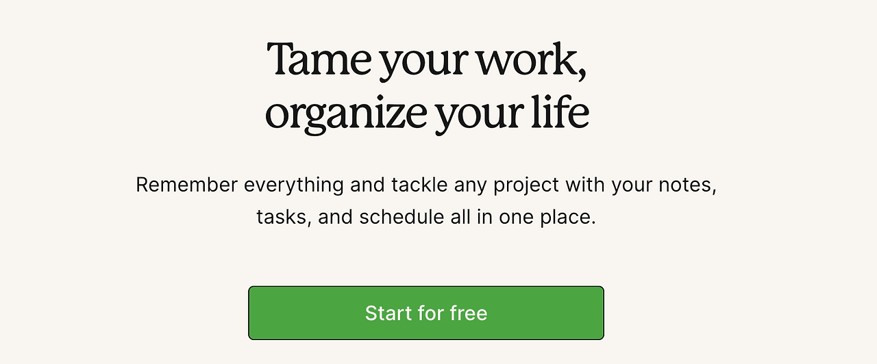 Evernote는 클릭존에 "Remember everything~“이라는 문구를 사용합니다. 이 문구는 Evernote의 핵심 가치와 동시에 앱의 혜택을 이해시키는 메타포로 작용합니다.