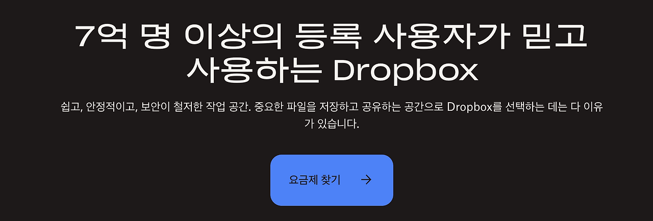 이 외에도 Dropbox는 “7억 명 이상의~”라는 사회적 증명(social proof) 라이팅도 사용합니다. 이는 많은 사용자가 이미 서비스를 신뢰하고 있다는 점을 강조하여 신규 사용자 가입을 유도합니다.