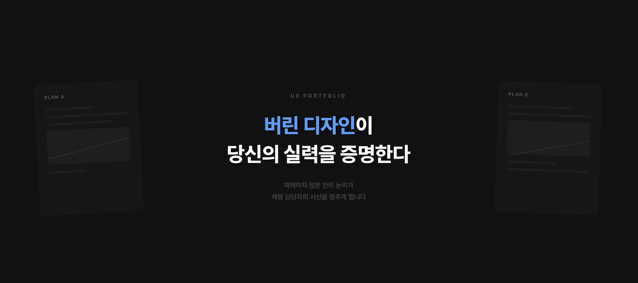 버린 안의 이유는 곧 고른 안의 근거가 됩니다. 최종 합격은 아웃풋이 아닙니다. 디자이너가 그 아웃풋에 도달하기까지의 선택 기준이 지원 회사의 팀내 결정 구조와 부합하는 경우가 많습니다.