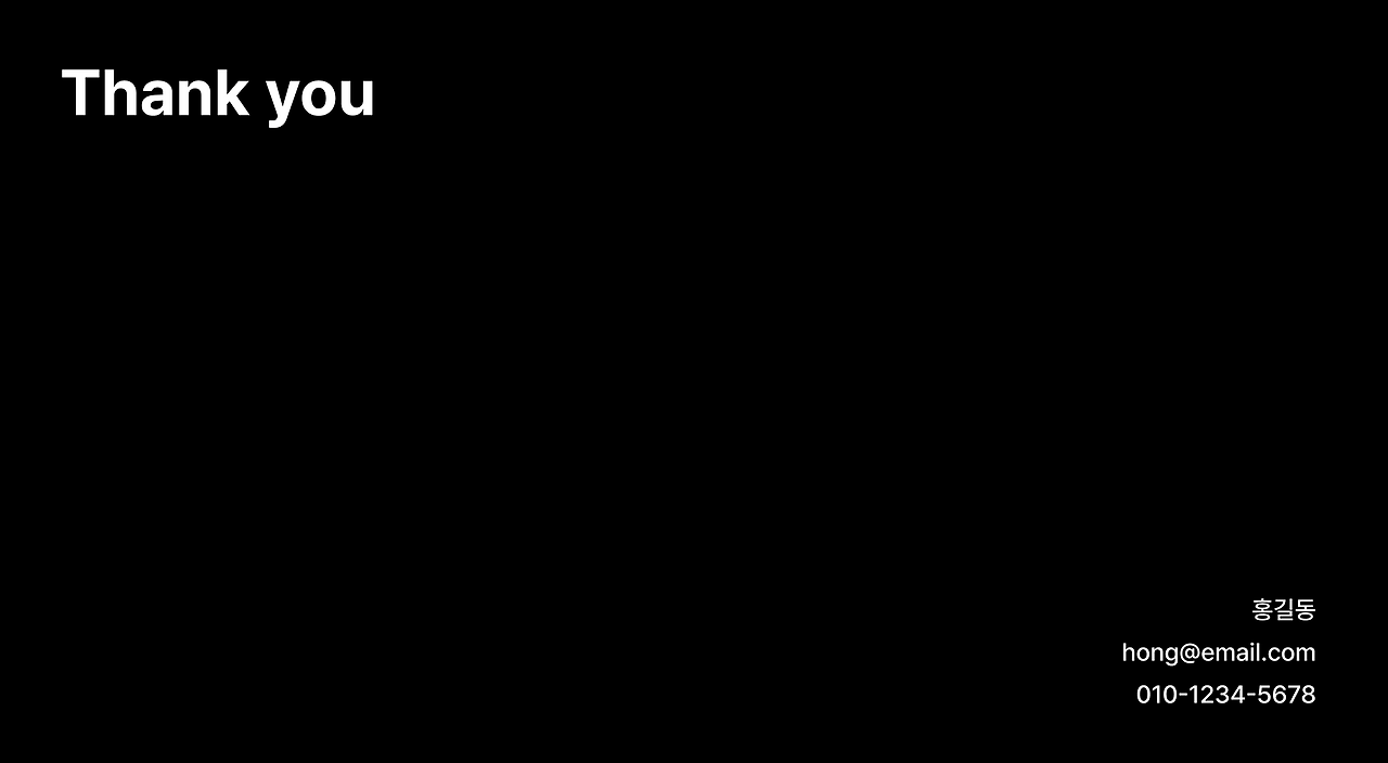 많은 포트폴리오는 대부분은 이렇게 끝납니다. Thank you. 또는 감사합니다. 그리고 이메일 주소 하나. 틀린 건 아닙니다. 다만, 인상에 남았던 포트폴리오들은 마지막 장이 조금 달랐습니다.