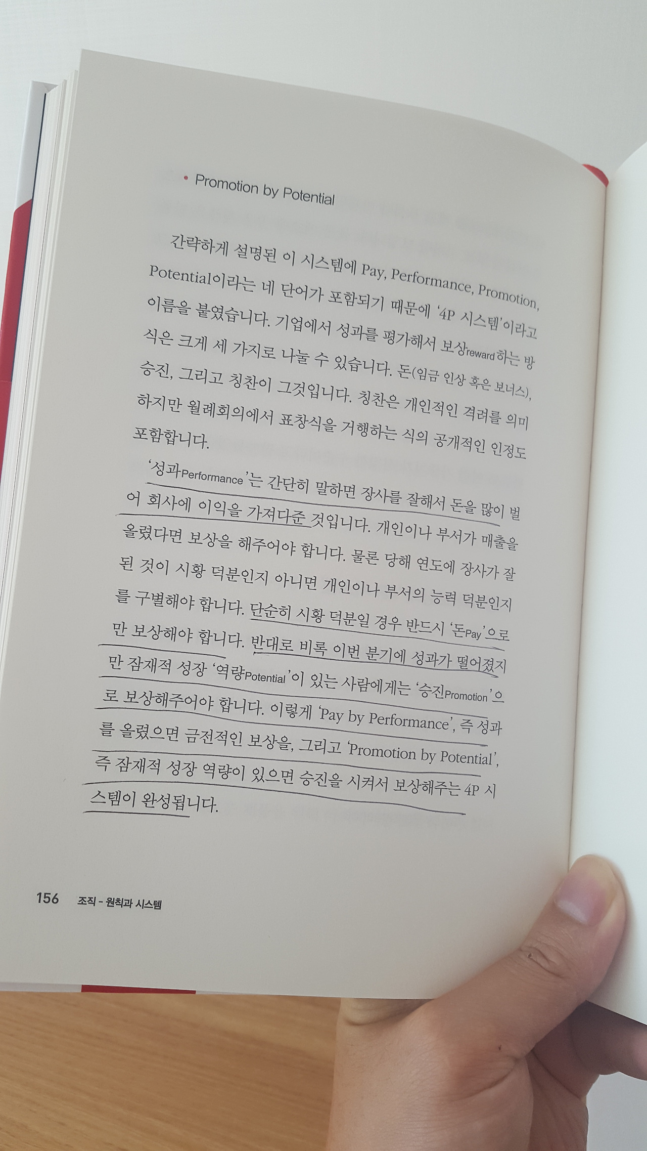 그중 가장 인상 깊었던 부분으로 Pay by performance, Promotion by potential평가와 보상의 4P 시스템인데 인용을 하자면
