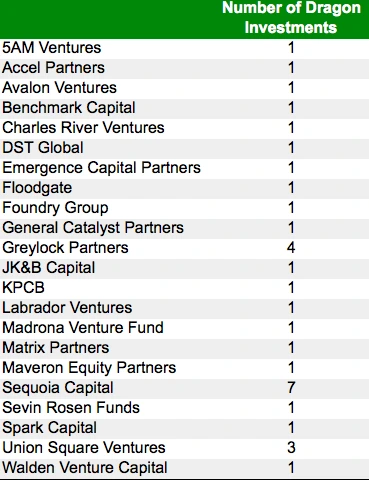 Sequoia Capital with seven dragon investments (WhatsApp, FireEye, Palo Alto Networks, ServiceNow, LinkedIn, YouTube, Google)