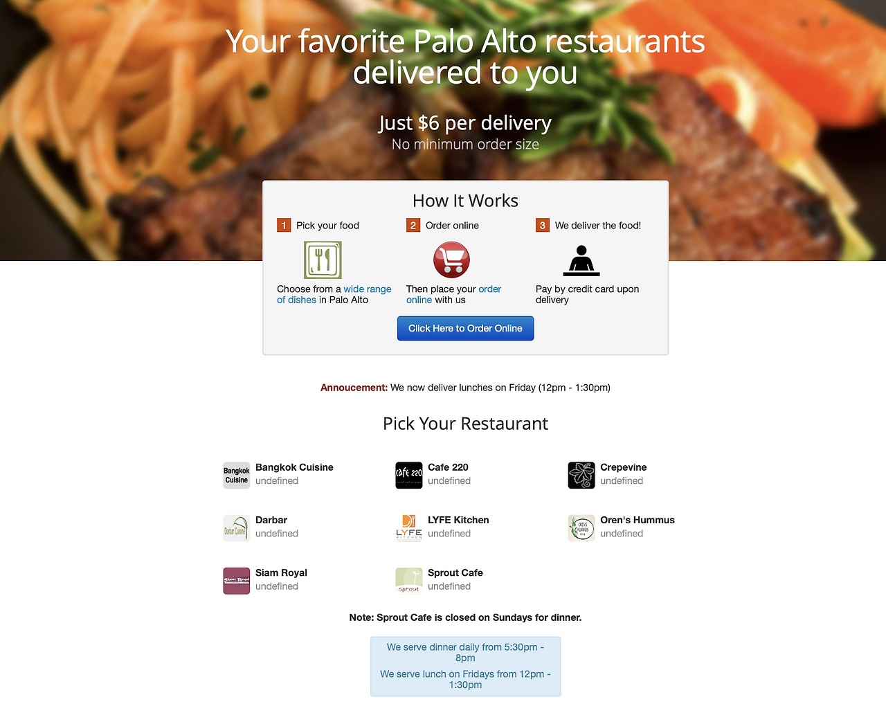 그들은 PaloAltoDelivery.com이라는 웹사이트를 만들어 구글에서 검색되도록 했고 드디어 론칭 후 반시간 만에 첫 주문을 받음.