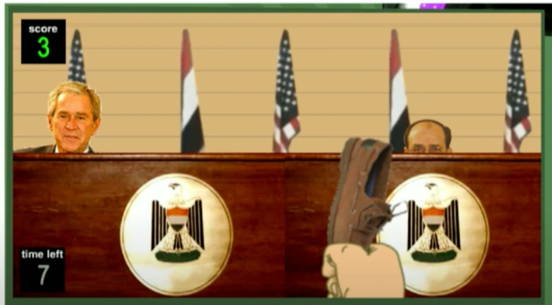당시 미국 대통령이던 조지 w 부시에게 신발을 던지는 것을 오마주 해 게임을 만들었는데 7일 만에 9M의 unique visitor를 기록함.