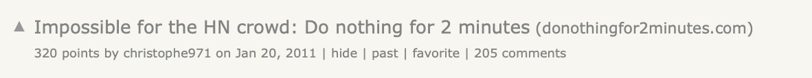 해커 뉴스에는 do nothing for 2 minutes를 챌린지 형태로 배포했는데 이는 단순한 안내보다 훨씬 흥미롭게 소구 됨.
