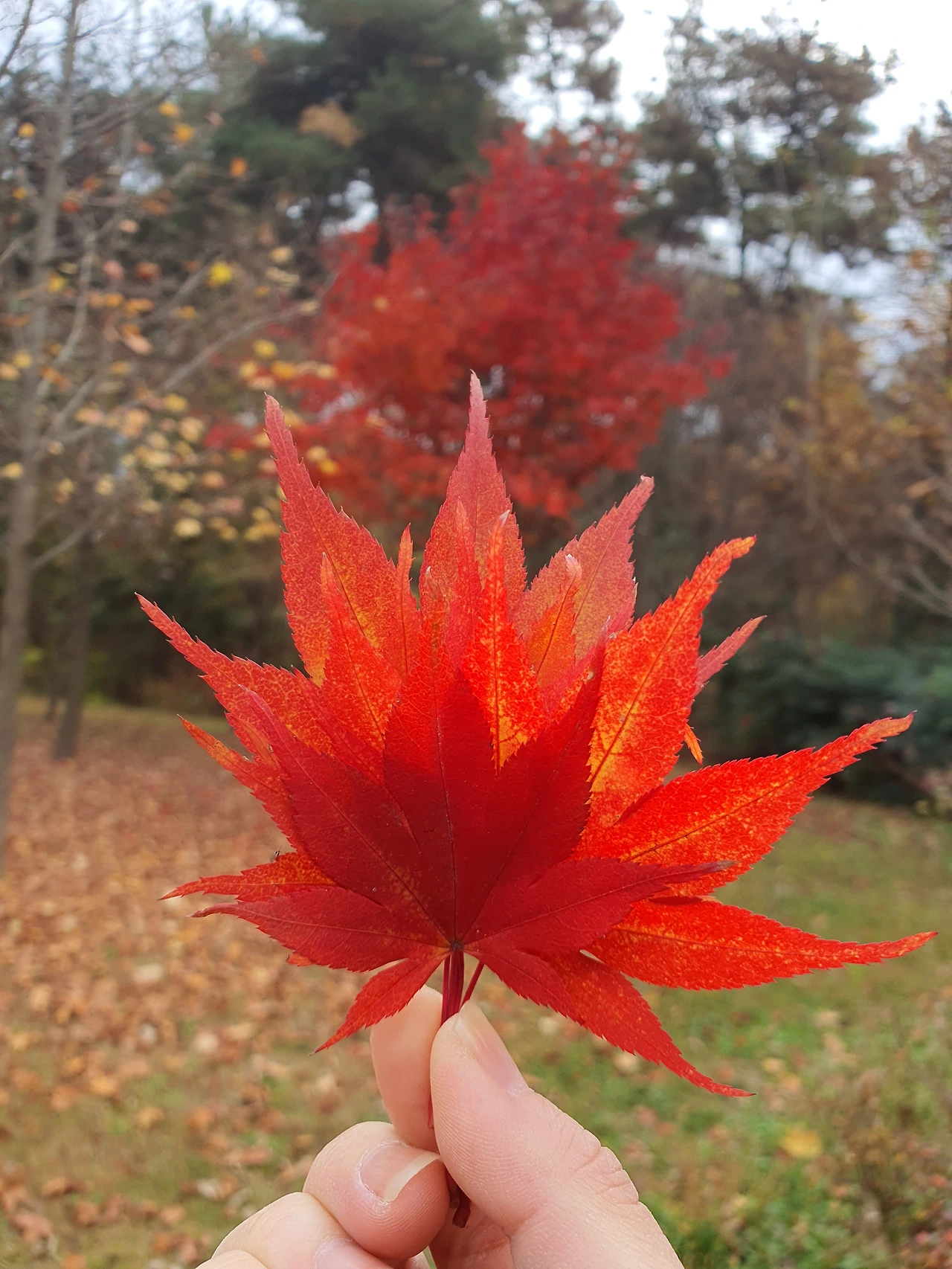 정말 준비해야 하는 건 아닌가, 정말 마지막을 생각해야 하는 건가. 택시에서 내내 눈물이 쏟아져 나왔다. 불안함에서 오는 눈물. 거의 도착해서야 얼굴을 단장했다. 울지 않아야 한다. 오는 길에 보니 빨갛게 단풍이 물이 올랐다. 할머니는 낙엽이나 단풍, 솔방울 같은 것들을 좋아하신다. 작년 가을엔 둘이 휠체어 끌고 나가서 집 근처의 단풍도 보고, 솔방울도 줍고 했는데.. 그때의 추억이 생각나 병원 뒤의 공원을 가본다. 빨간 단풍을 보고 싶었는데, 온통 갈색의 낙엽뿐이다. 조금 더 안쪽으로 들어가니, 빨갛게 피어난 단풍나무가 한그루 보인다. 바닥에 떨어진 단풍잎 중, 깨끗하고 색이 예쁜 것을 골라, 할머니 빨리 낫게 해 주세요 기도하며, 가장 예쁜 잎을 다섯 장을 골랐다. 이걸 보시면 할머니도 조금은 기분이 좋아지실까, 할머니에게도 희망이 생기기를.