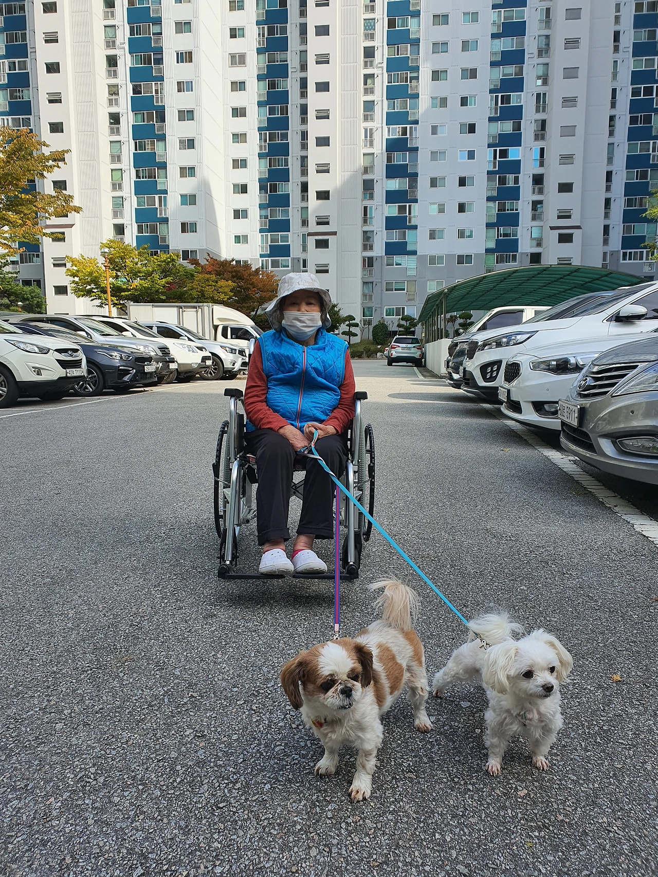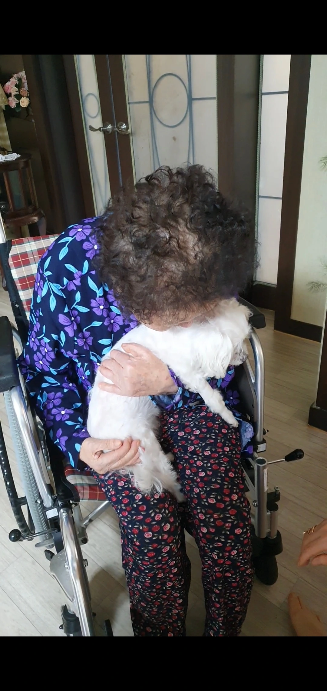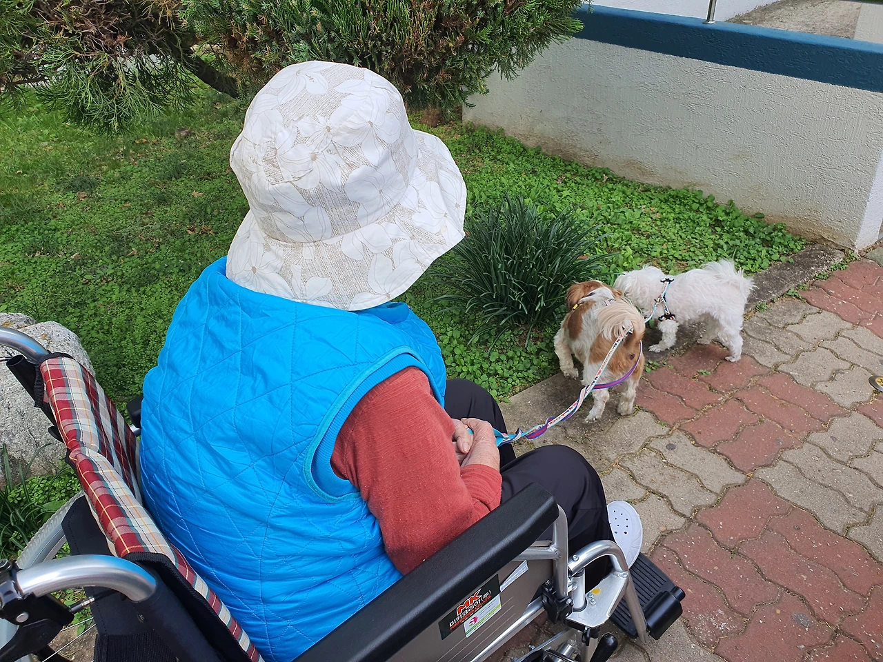 할머니는 휠체어에 앉으셔도 강아지