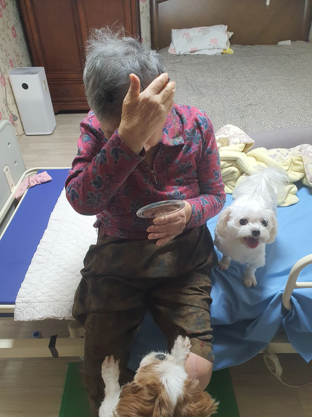퇴원하고 오면 강아지를 안고 우셨다.