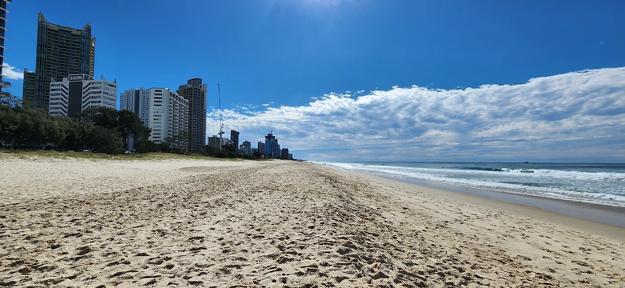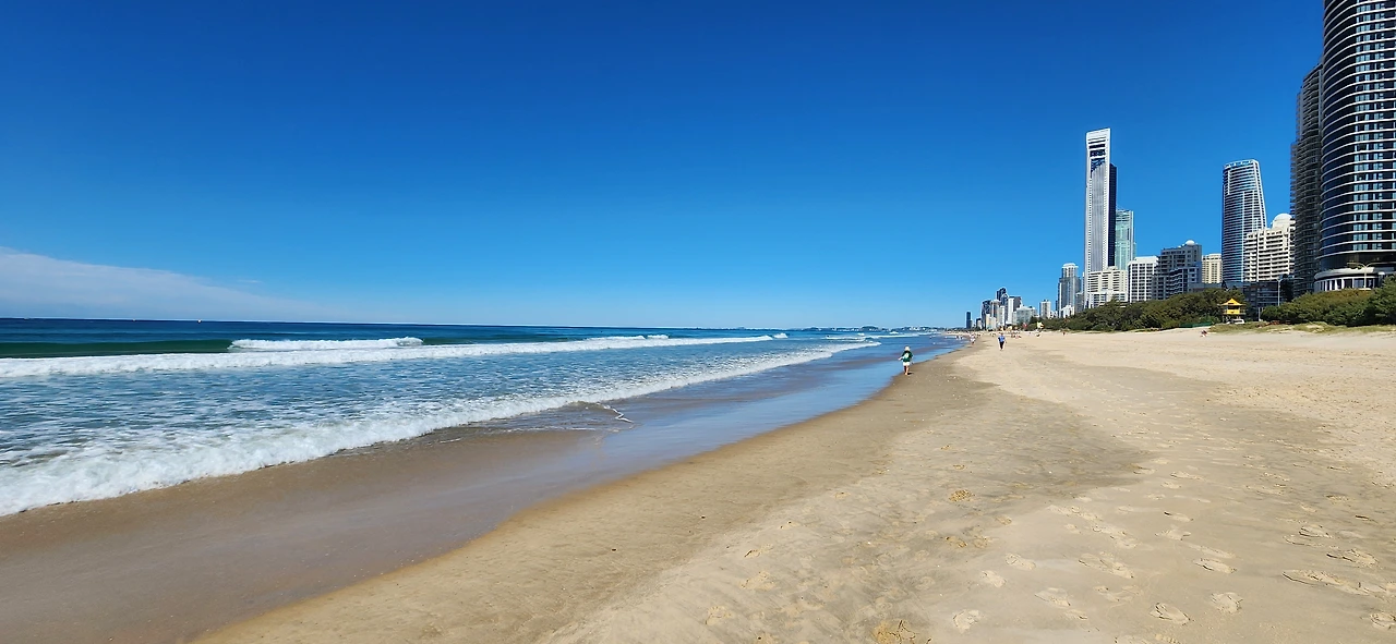 숙소는 서퍼스 파라다이스 근처예요. 풍경이 아주 예쁘고 어디나 그렇겠지만 바다가 기가 막힙니다. 동쪽에서 떠오르는 이글거리는 태양을 볼 수 있는 새벽과 끝없이 펼쳐진 바다의 양쪽 끝은 여기가 해운대가 아니고 골드코스트구나를 느끼게 해줘요.