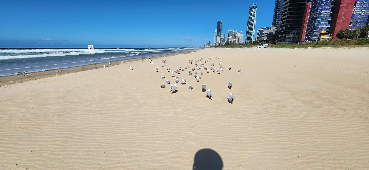 그렇게 이런저런 핑계를 대며 바다로 나갔네요. 해변에서 숙소까지 직선으로는 100미터 남짓이라 사람들이 뭐 하나 23층에서 바라보고 바람이 어마무시하게 부는 골드코스트 해변으로 산책을 나갔답니다. 어디까지 갈 수 있을지 최소한 지도는 살펴봤어요. 구글 지도를 보니 걸어서 1시간 37분 즈음 거리.. 제가 걸음이 좀 빠르고 산책과 운동을 좀 병행해야 할 때가 왔다 싶어서 아이 픽업시간 전에 올 수 있겠다 싶었지요.