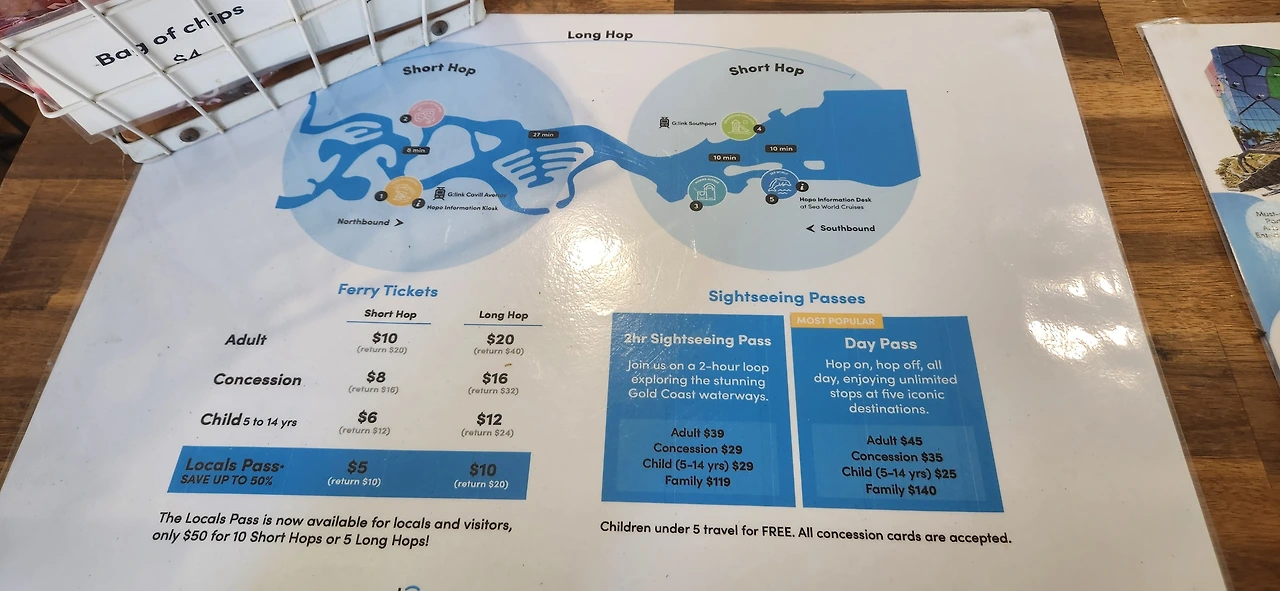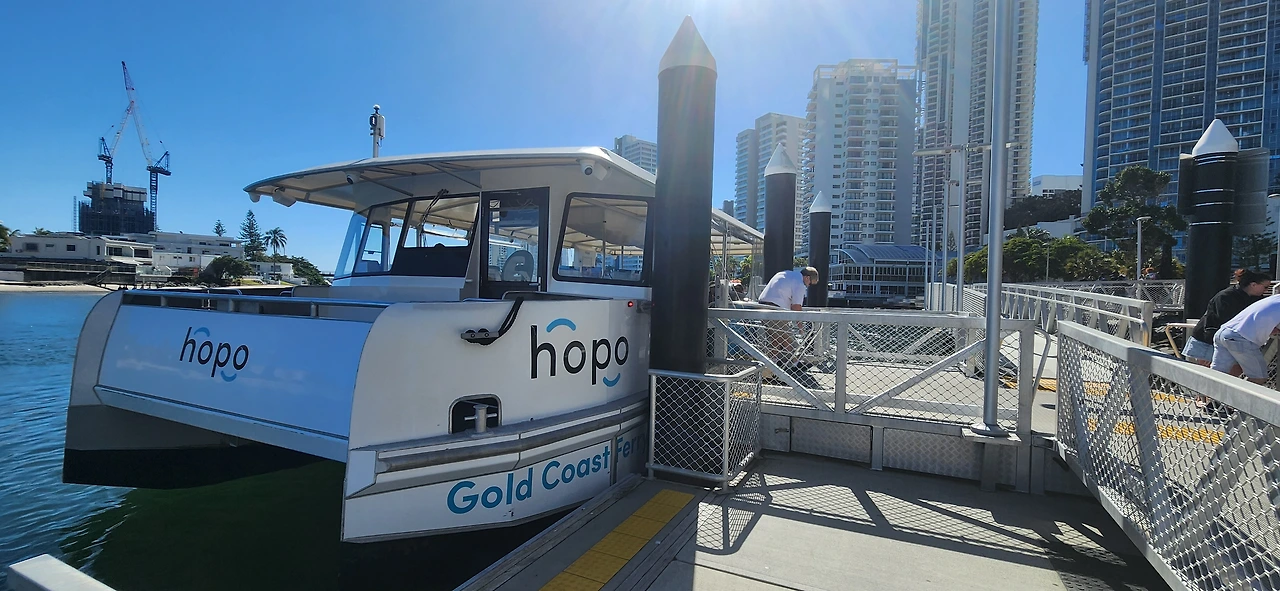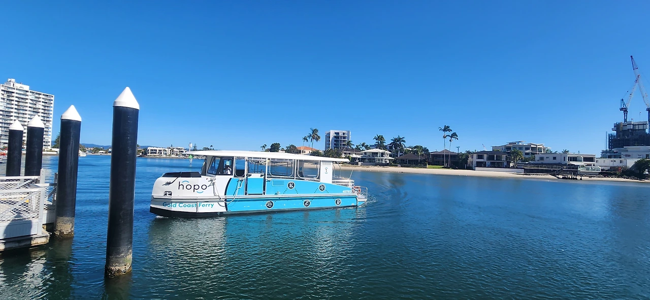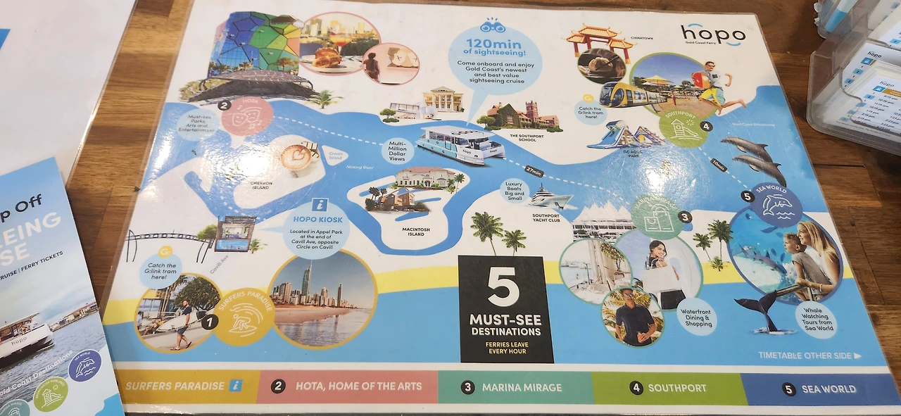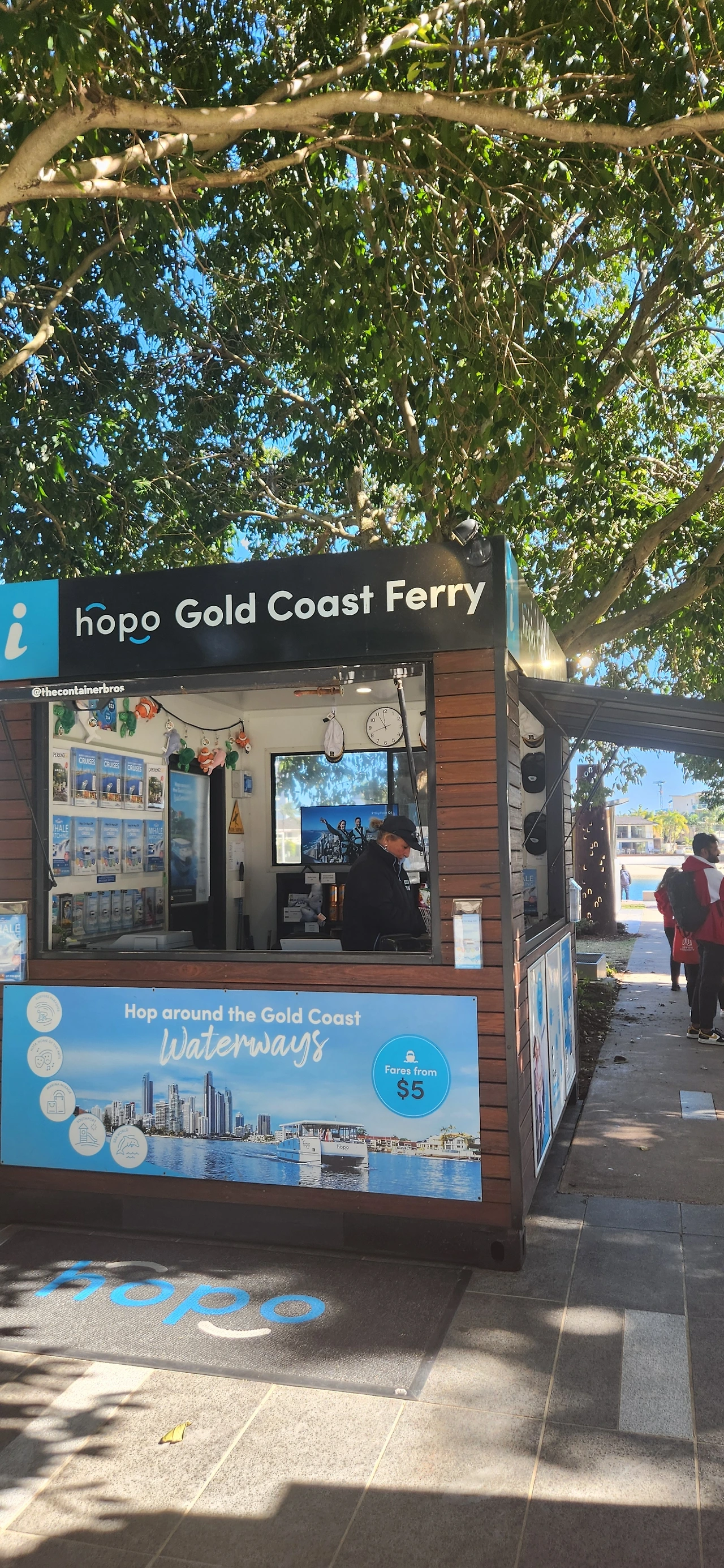 한 바퀴 돌다 보니 공원 쪽에 Hopo 페리가 보이네요. 딱 탑승 시간인지 배를 타고 골드코스트 시내를 투어 하는 사람들이 보이고 선착장에 정착하는 모습과 티켓을 팔고 있는 모습에 아이와 다시 와봐야겠다 생각했어요.