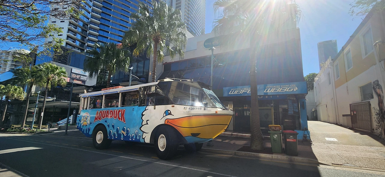 뒤편으로 지나니 수륙양용 자동차도 보이네요. 길가에서 몇 번 마주쳤는데 여기 수변 위를 달리는 게 이벤트인가 봐요. 높이가 높고 바퀴도 크고 아이들이 재미있어하겠네요.