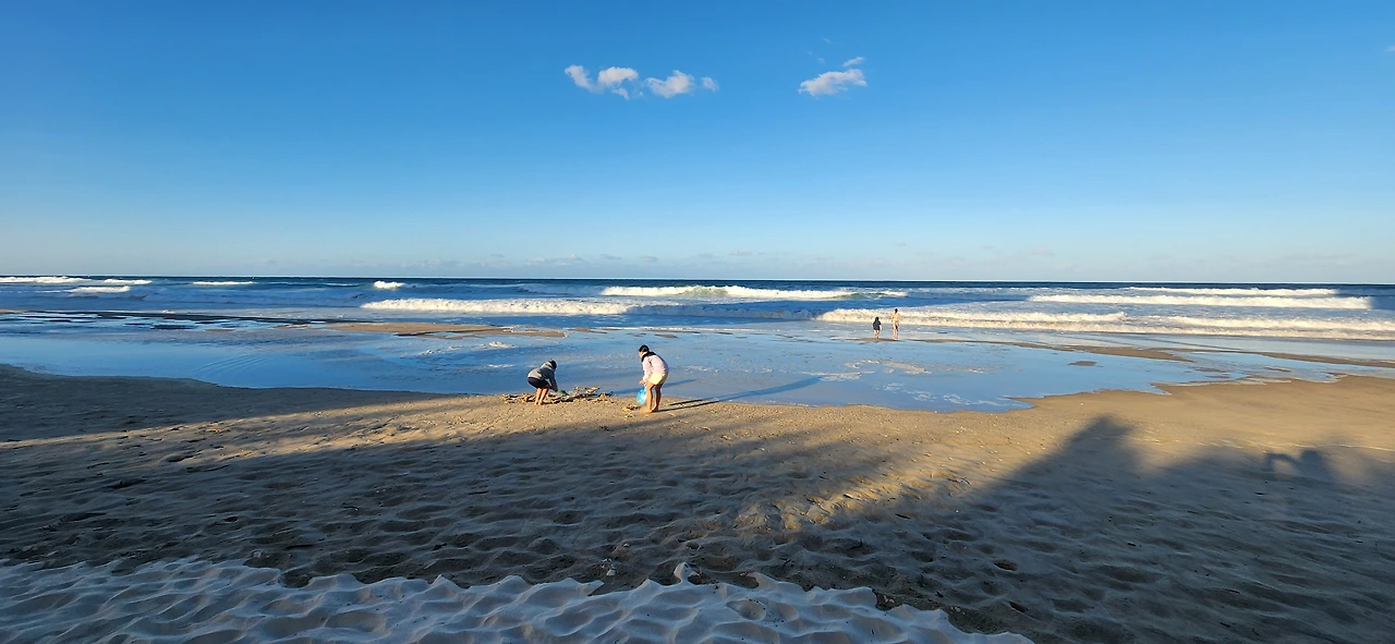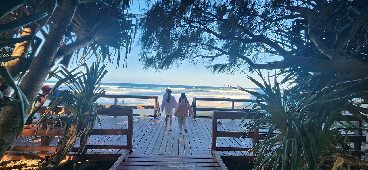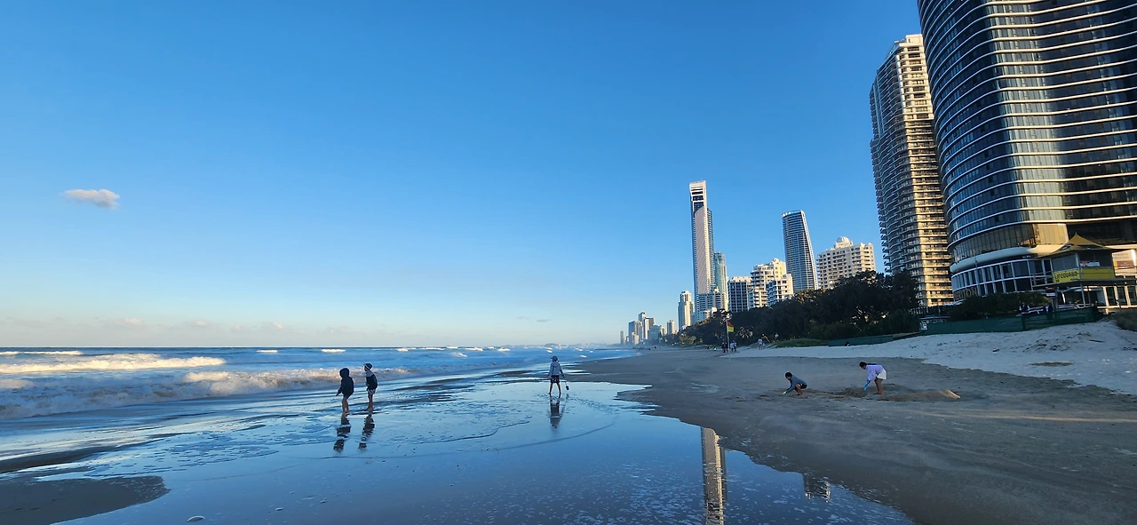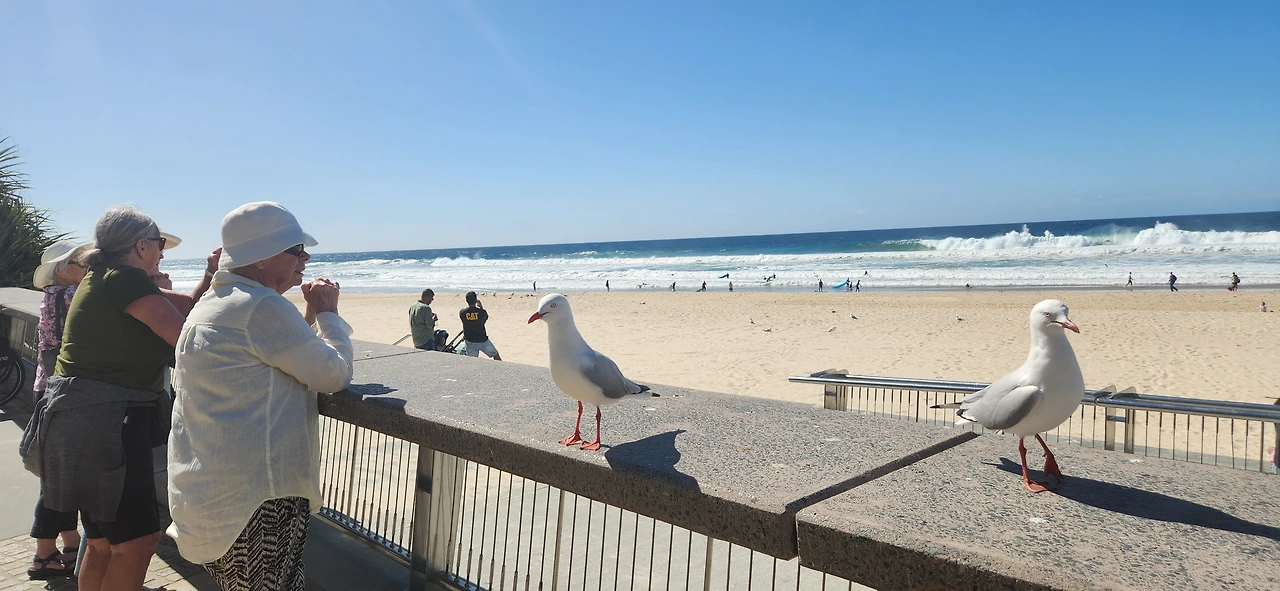 골드코스트의 겨울 바다는 하이얀 파도 부서지는 소리와 은빛으로 출렁이는 물결이 가득하다. 고운 모래와 한적하게 거니는 사람들, 어쩌다 일광욕을 하는 모래 위에 드러누워있는 사람들도 보이고 해변가를 뛰어다니거나 산책하는 사람들 모두 여유가 묻어난다. 파도는 제각각 물러가고 넘실대고 덮칠 듯 달려오고 또 부서져 은빛 알갱이가 반짝이는 다양한 모습으로 속삭인다.