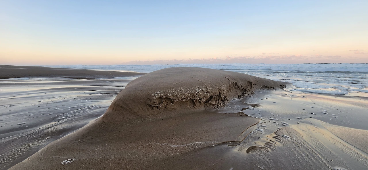 가만히 바라보고 있노라면 고운 모래 사이로 조그마한 조개껍질 하나도 쓸려 내려가는 물살을 이겨내는 듯 양갈래 물줄기를 만들고 그때 그때 파도에 덮쳐 만들어진 모래언덕은 실로 경이로운 풍경을 만든다. 정답이 없는 것이다. 우리는 그렇게 정답을 외치며 살고 있는데, 바다는 말을 한다 그냥 이렇게 흘러가는 것이 예술이 되고 삶의 일부가 된다고 말하는 듯하다. 누군가의 발걸음을 그대로 따라 하는 것도 나름 의미가 있겠지만 나만의 방식으로 나의 삶을 살며 내가 좋아하고 내가 즐거운 것에 집중하는 삶이 가끔은 더 경이로운 것이 아닐까?