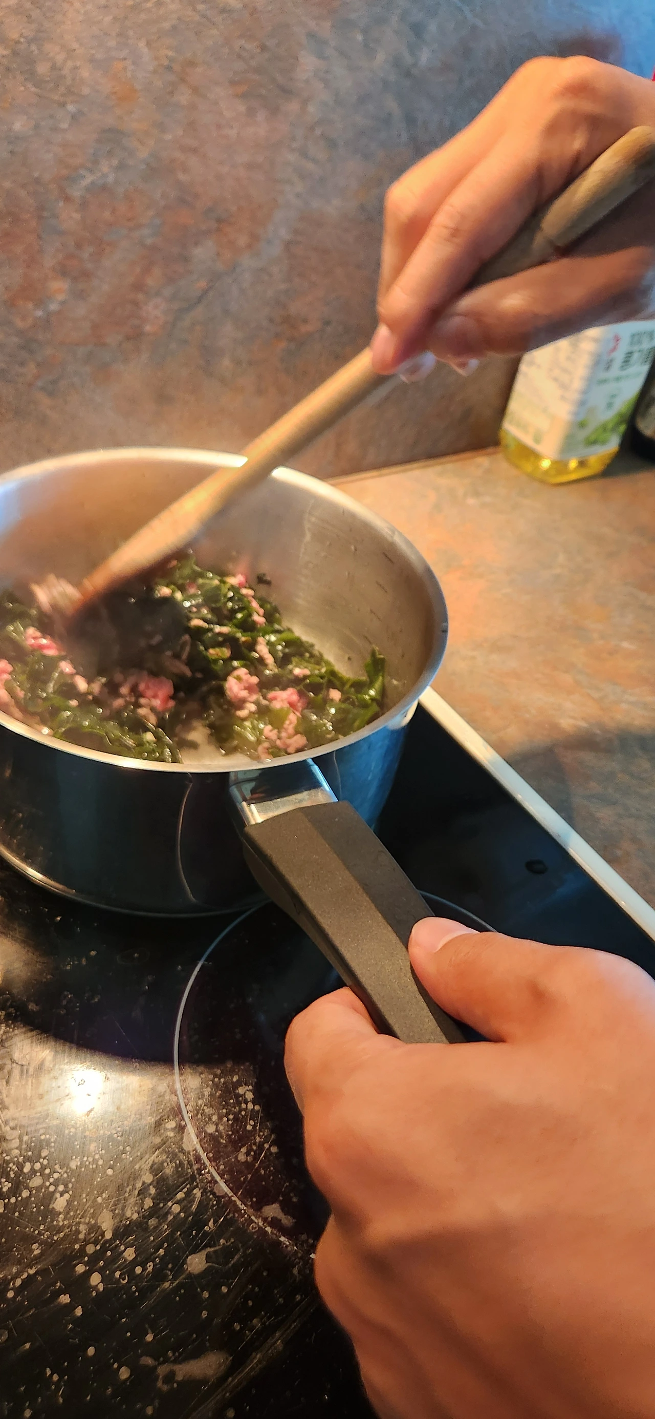 딸아이가 미역국을 좋아해서.. 그리고 저는 간장맛이 아닌 그냥 소금 간한 미역국을 좋아하는 스타일이라 호주에서 흔한 다짐 소고기를 넣어서 달달 볶은 후에 참기름과 소금으로 맛을 내었어요~