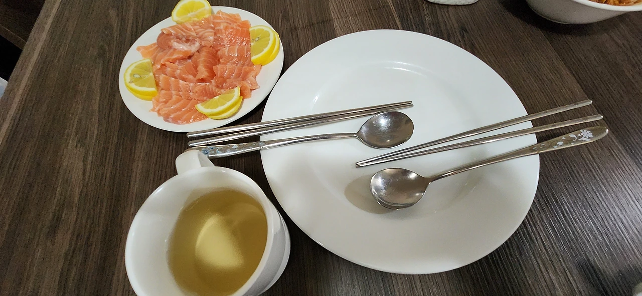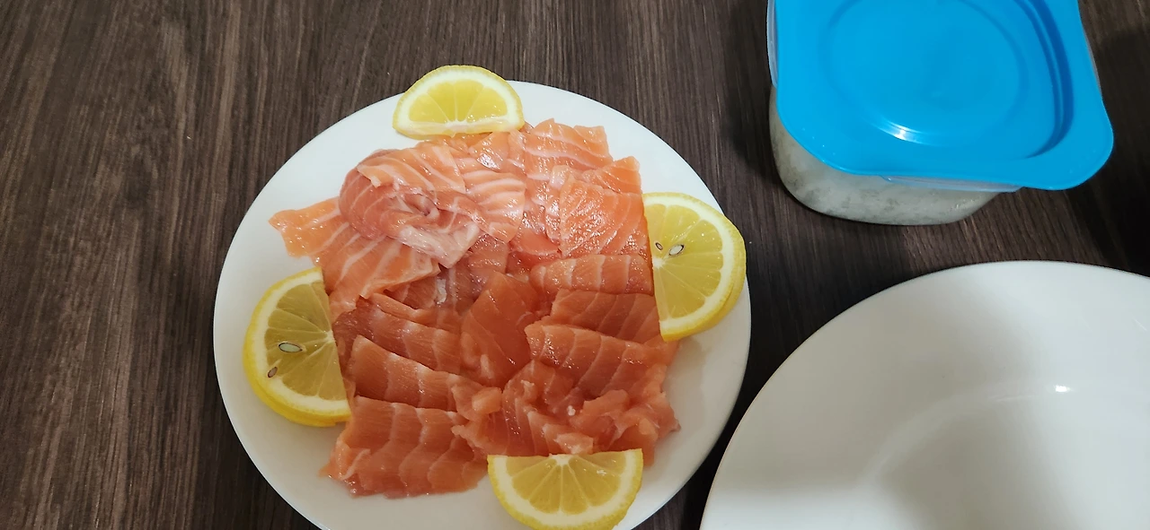 딸아이가 연어를 보자마자 먹고 싶다고 해서 사 왔는데 두려움반.. 설렘반이었다가 막상 먹어보니 신선하고 맛있었어요. 별다른 소스가 없어서 간장과 레몬으로만 맛을 내었는데 신선한 연어 회라 상큼한 레몬과 같이 먹었네요~