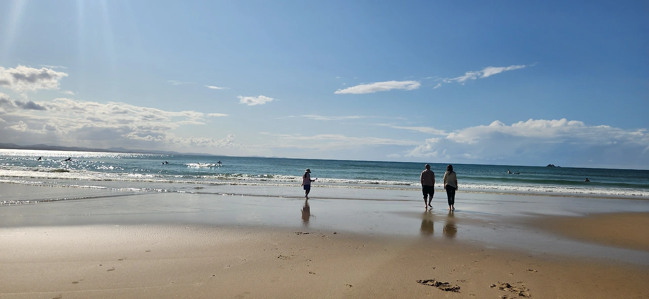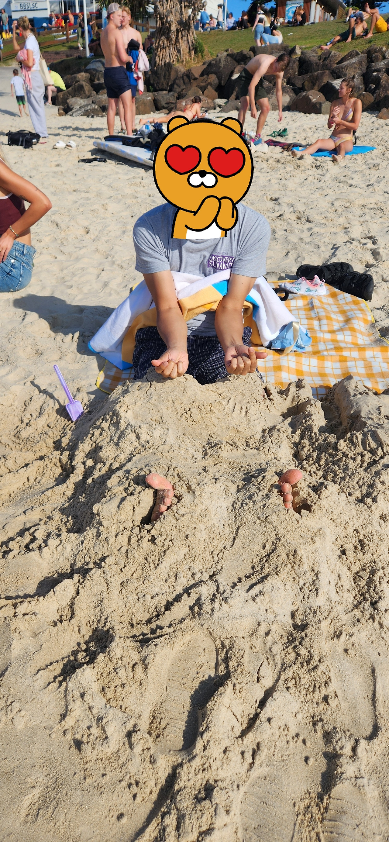 밥을 아주 든든하게 먹고 백사장에 나갔습니다. 여긴 그야말로 서핑의 천국답게 곳곳이 서핑하는 사람과 해수욕을 즐기는 사람들이네요~ 아이와 모래찜질도 하고~ 바닷물에 발도 담드고 여유로운 시간을 보내 봅니다.