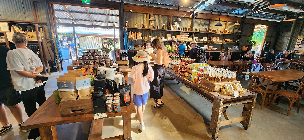 가는 길에 더팜이라는 카페(아웃백)에 들러 구경도 하고 아이들 아이스크림도 먹고 커피도 마시고 간혹 브런치도 드시고 하시네요~ 여기도 평화로운 호주 분위기였어요. 닭과 양, 염소 등 여러 동물들 먹이 주기 행사도 있고~ 농장을 쭈~욱 산책할 수도 있더군요~