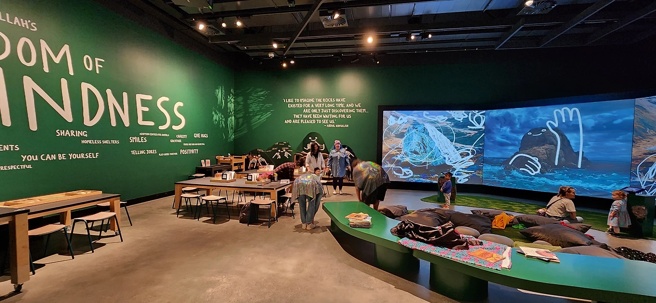 일층에도 전시장이 몇 개 있는데 다른 곳은 공사 중이고 아이들을 위한 체험 공연장만 문을 열었네요. 유치원생 되어 보이는 친구들이 엄마와 함께 체험을 하고 있었어요. 아이들은 언제나 너무 귀엽죠~?