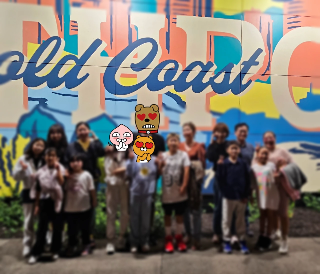 골드코스트에서의 마지막이고 또 저희는 송별회? 같은 날이라 기념으로 다 같이 사진을 찍었어요. 다비님 남편분이 희생?을 해주셔서 ㅎㅎㅎ