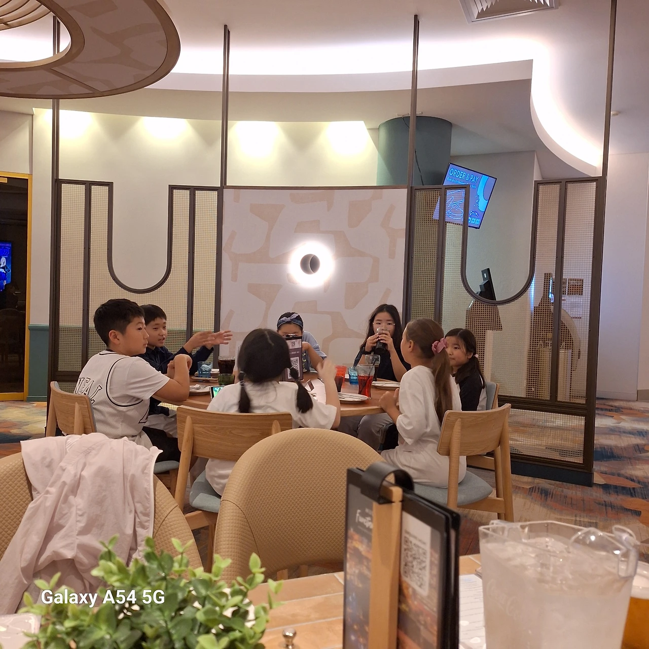 아이들을 따로 테이블을 하나 주고 앉아서 먹도록 했는데 어른들도 편하고 아이들도 신이 나서 먹기도 하고 중간중간 나가서 놀기도 하고 그러네요~ 아이고 귀여워라..