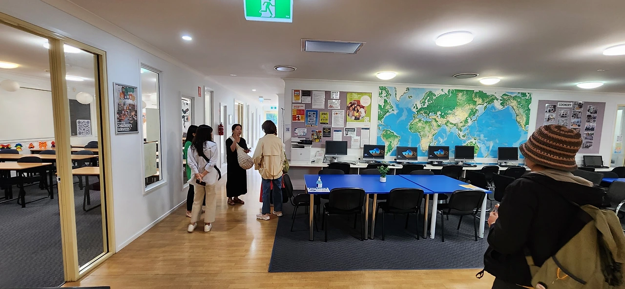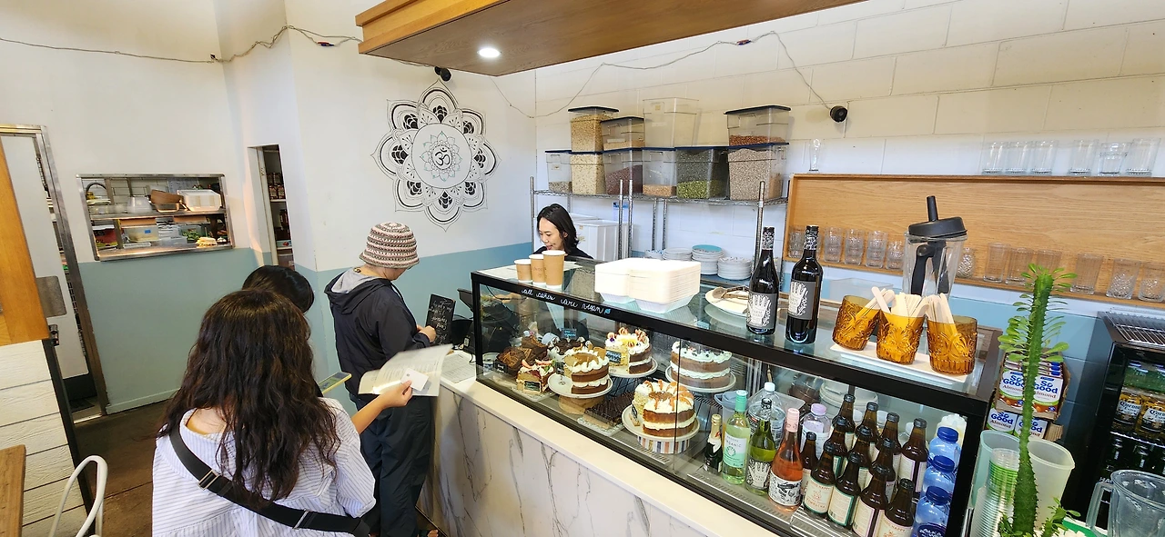 실장님의 안내도 있었고 대부분 별도 스케줄도 없어서 다 함께 근처 한국인 아내와 호주인 남편이 운영하는 예쁜 카페 쪽으로 걸어 이동했다. 이국적인 날씨와 풍경들 무엇보다 푸릇푸릇한 잔디와 크나큰 나무들 싱그러운 바람과 파아란 하늘이 여유를 느끼게 해 주었다.
