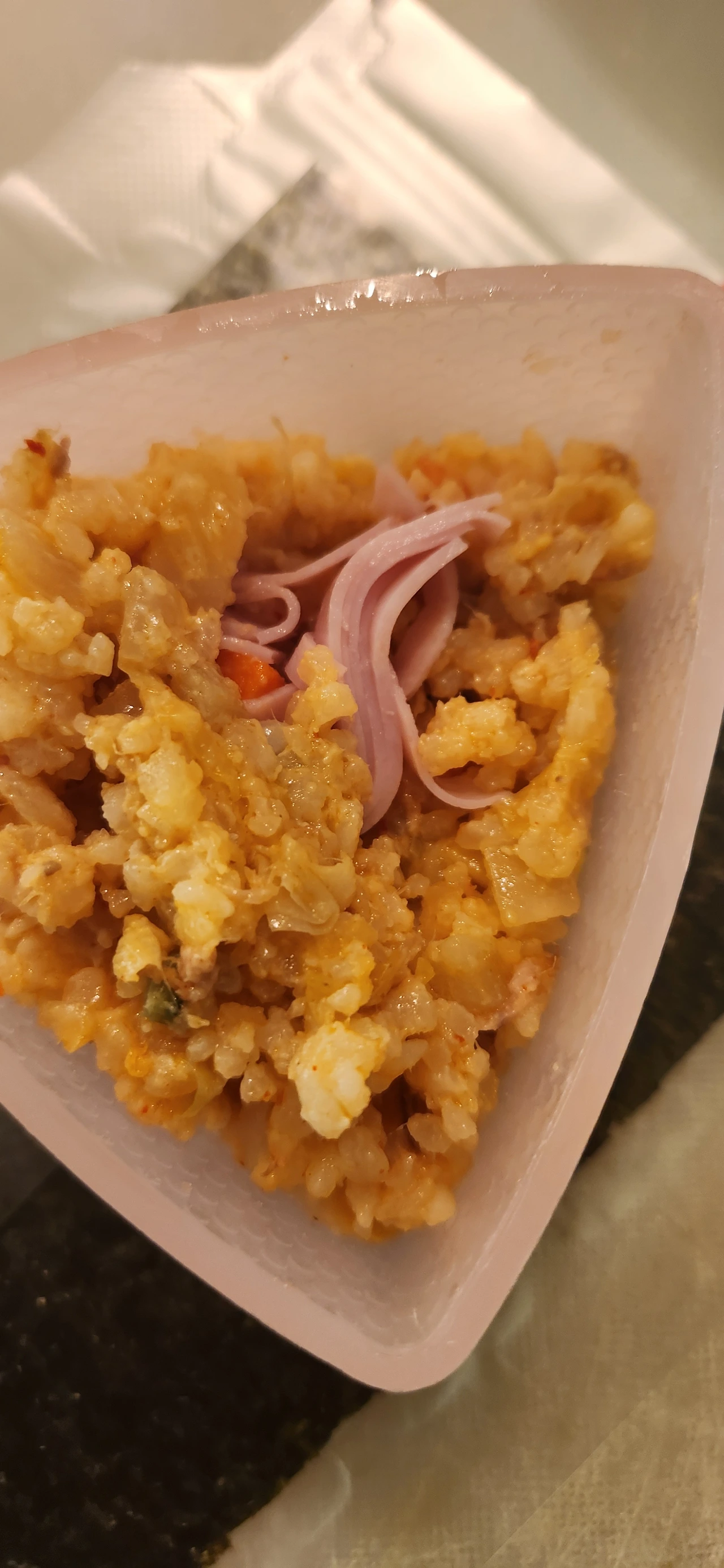부랴부랴 첫 번째 미션인 도시락을 위해 오늘은 김치볶음밥을 삼각김밥에 말아서 보내주기로 했다. 다행히 반찬을 신경 쓸 필요가 없고 삼각 김밥용 김도 다 인터넷에 존재하기 때문에 큰 무리 없이 연습(?) 했던 그대로 진행하면 되었다. 단지 문제는 집에서 늘 하던 것과 다르게 늘 쓰던 재료들이 즐비하게 존재하지 않는다는 것!