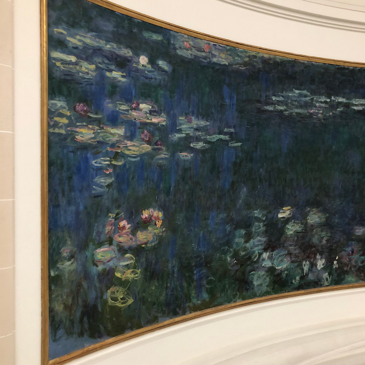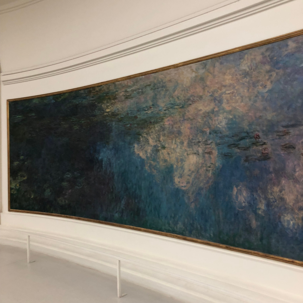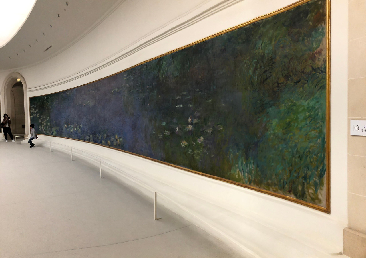 날 구원해준 친구들이랑은 서로 어디에 숙소를 잡았는지 정도만 확인하고 헤어졌다. 그러고서야 도착한 오랑주리 미술관은 다른 미술관에 비해 상당히 협소한 건물로, 총 3개의 관으로 이루어져 있다. 각각의 관은 모두 가로로 길고 거대한 모네 수련 연작을 벽에 두르고 있다. 관람객들은 각 관 한가운데 놓인 의자에 앉아서 천천히, 오래, 자세하게 각 작품을 감상할 수 있는, 철저하게 수련 연작에 바쳐진 미술관이다. 그리고 내가 파리에서 가장 사랑한 미술관이기도 하다. 입장료는 약 13유로 정도인 것 같은데, 나름 밤베르크 대학 소속인 나는 (*교환학생이든 뭐든 일단 EU 내 대학 학생증 소지자는 파리의 거의 모든 미술관을 프리패스 할 수 있다) 학생증을 꺼내 잠시 보여주고 바로 통과. 사람들은 바글거렸고 그림 앞에서 셀카를 찍는 사람들 때문에 감상이 방해받기도 했지만 그럼에도 충분히 들를 가치가 있었다.