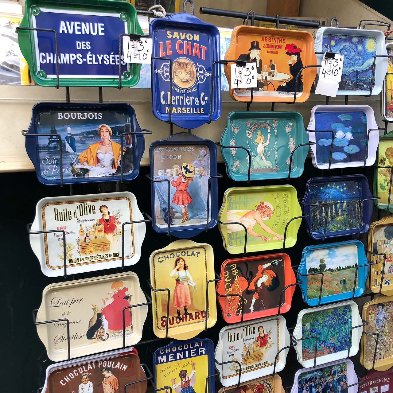 파리에 있는 내내 (전날 잠시 흩뿌린 비까지 포함해서) 날씨는 환상적이었다. 구름 몇 조각 깔린 하늘 아래 화창한 햇볕을 쬐며 강변을 걷고 있자니 행복이란 이런 거군, 하는 마음이 들었다. 다음 행선지는 셰익스피어 앤 컴퍼니. 강변 산책로가 끝나는 길을 따라 올라가니 노점상들이 상당한 퀄리티의 기념품들을 판매하고 있다. 오래된 음반과 고서적도 있다. 하나같이 질이 좋고, 상당수가 겹치는 품목이긴 하지만 모두 아름답다. 독일어권 도시(혹은 한국)를 여행할 때 발견하는 절망적인 감각의 기념품과는 차원이 다르다. 마그넷 몇 개와 빈티지 쿠키트레이를 샀다.